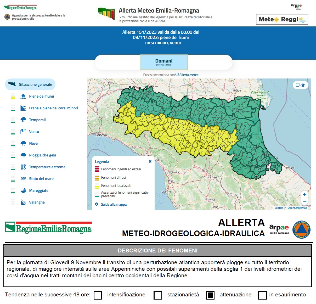 Per tale motivo è stata emessa da poco, dall'Agenzia per la sicurezza territoriale e la protezione civile e da ARPAE, una nuova allerta meteo 🟡"gialla" che interesserà parte della nostra Provincia.