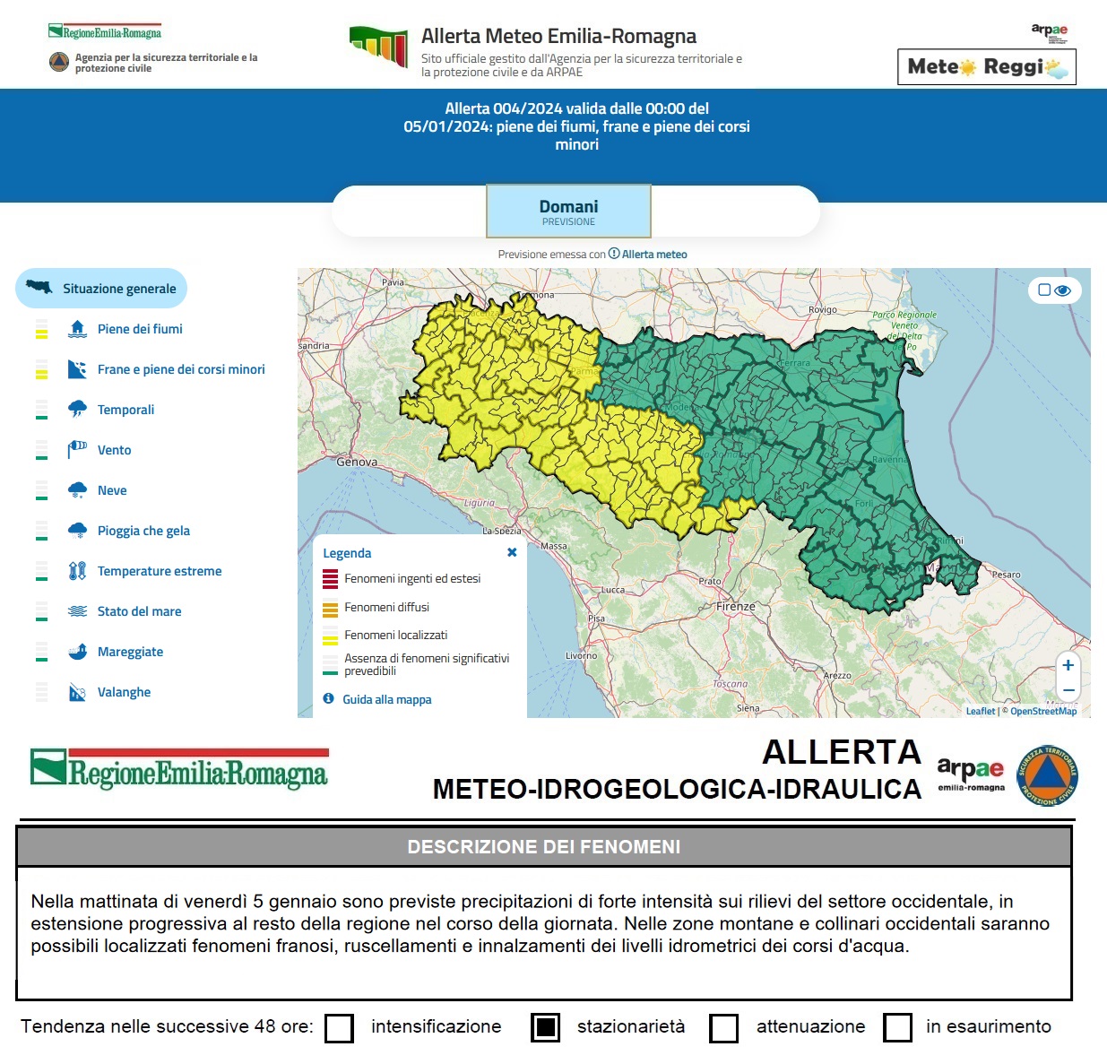 Allerta Meteo del 05 gennaio 2024