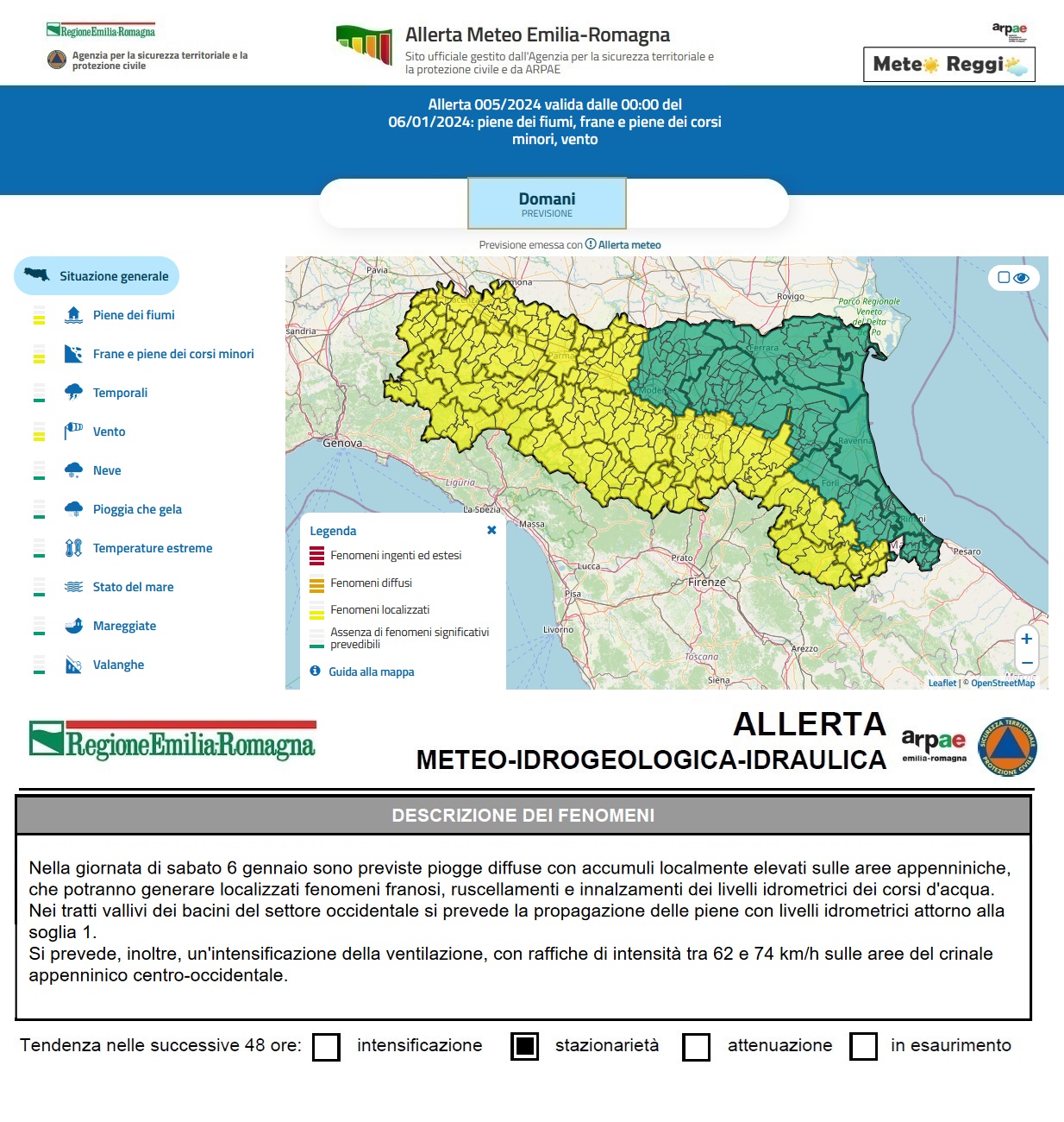 Allerta Meteo del 06 gennaio 2024