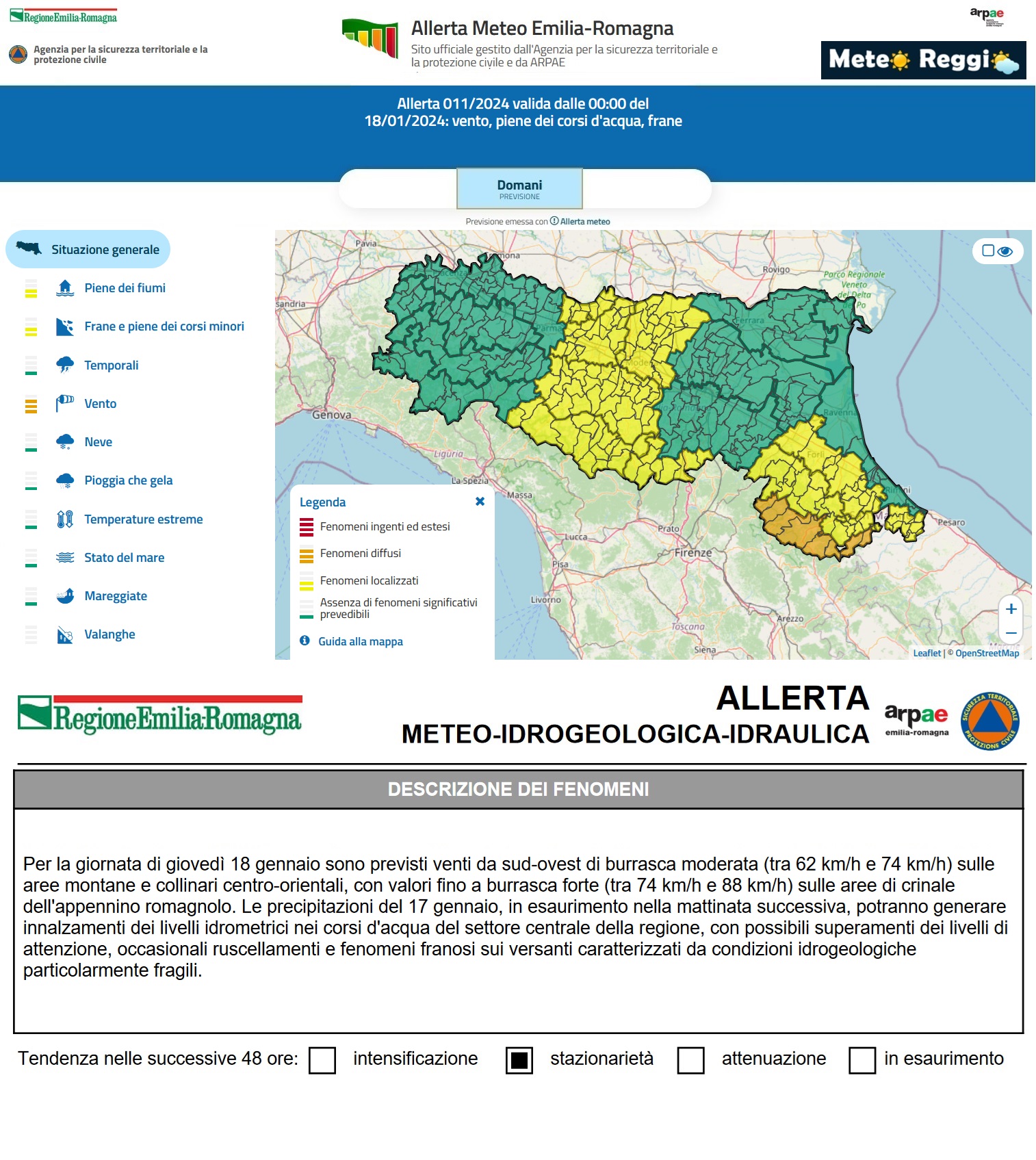 Ciò ha indotto l'Agenzia per la sicurezza territoriale e la protezione civile e da ARPAE, ad estendere l'allerta meteo 🟡 "gialla" all'intero territorio reggiano nella giornata di domani, giovedì 18 gennaio.