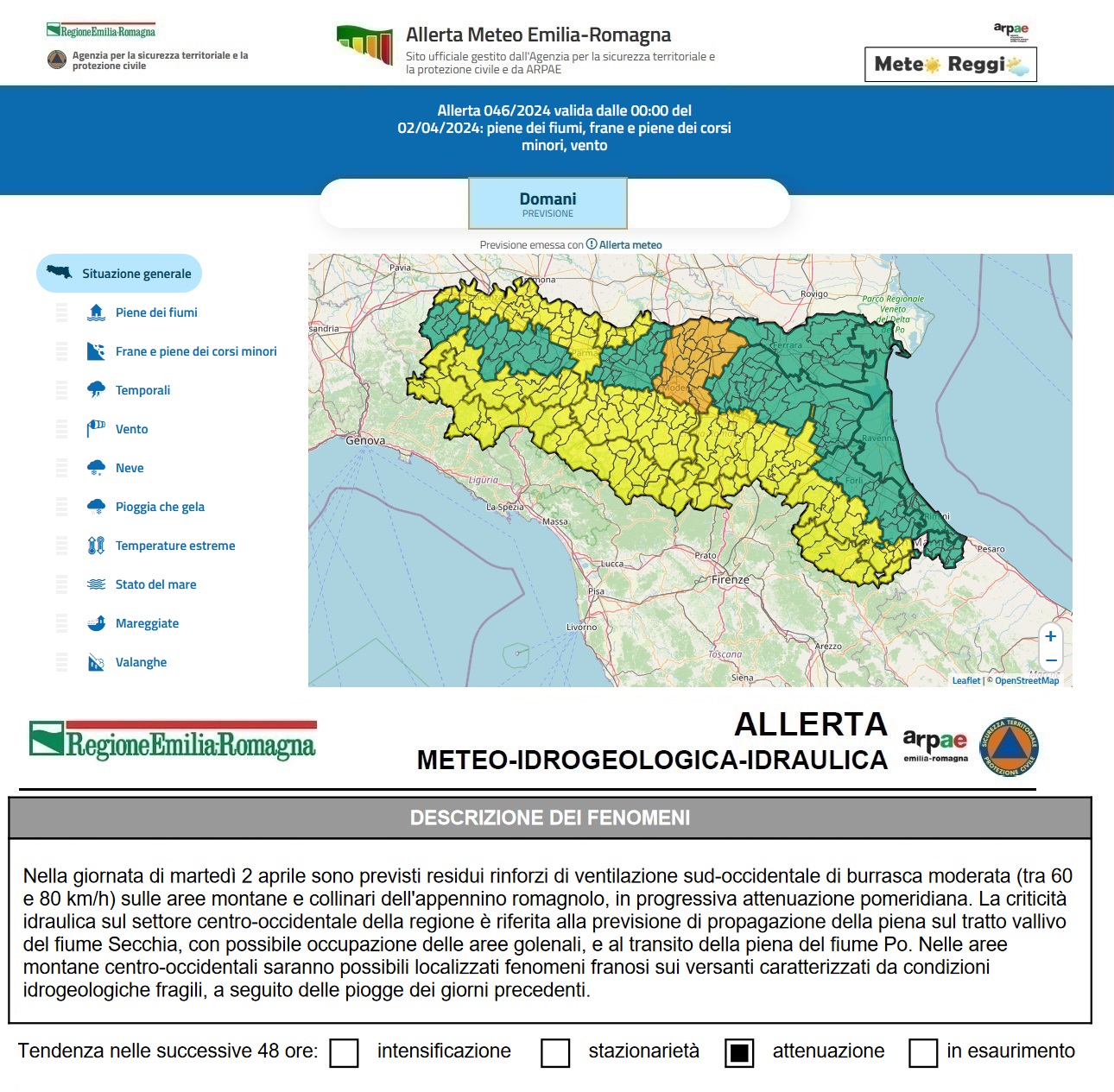 E' stata da poco emessa dall'Agenzia per la sicurezza territoriale e la protezione civile e da ARPAE una nuova allerta meteo 🟡 "gialla" che interesserà parte del nostro territorio. Questo per via delle conseguenze di quanto accaduto a Pasqua e Pasquetta con il transito di una vivace perturbazione che ha fatto innervosire i nostri corsi d'acqua e appesantito il suolo.