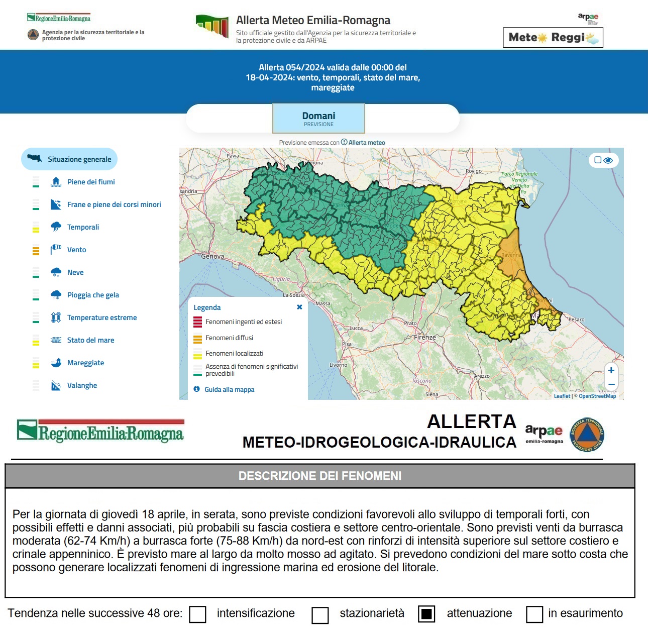 Prosegue la fase intabile iniziata dopo la dipartita dell'anticiclone delle Azzorre. Diversi cicloni si stanno alternando nello scacchiere europeo e questo convoglia correnti d'aria atlantica verso il nord-Italia. Nella giornata di giovedì 18 è atteso un nuovo aumento della ventilazione sul nostro Appennino e per tale ragione è stata emessa una nuova allerta meteo 🟡 "Gialla" per parte della Provincia di Reggio Emilia.