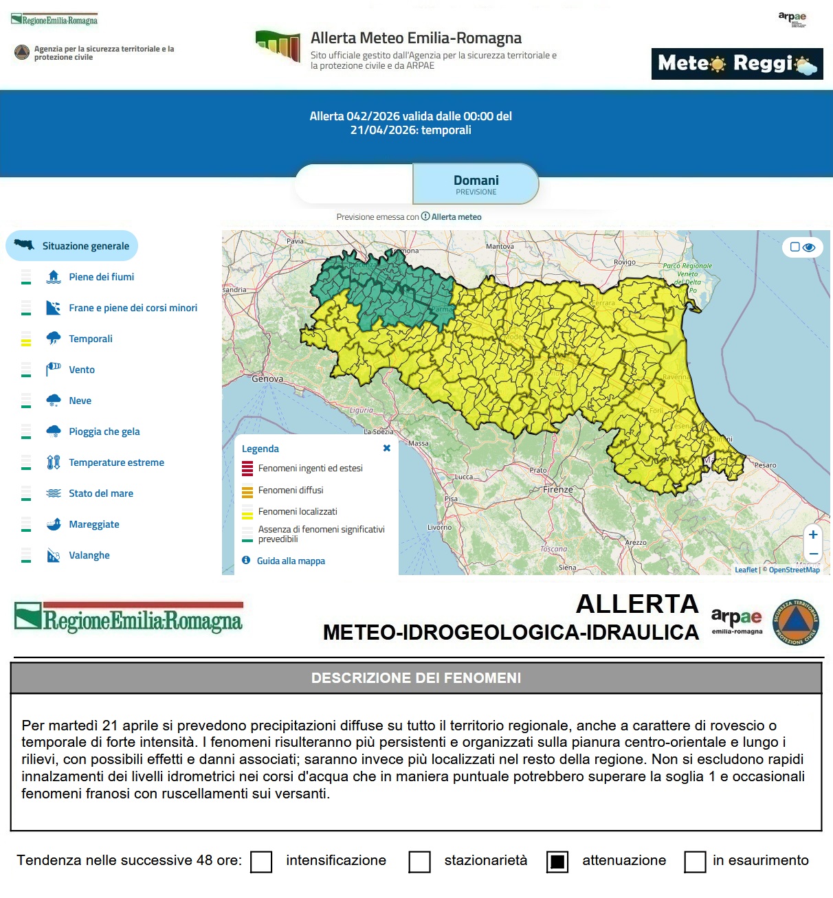 Anche gli ultimi modelli sembrano confermarlo, nella notte e prima parte della mattinata di domani (martedì 21 aprile), verremo interessati dal passaggio di un fronte temporalesco in discesa dalla Lombardia. Per tale motivo è stata emessa l'allerta meteo n°42 di quest'anno, ma "don't panic!" (cit. per NERD). Il passaggio sarà piuttosto veloce e il tutto scivolerà verso sud-est come spesso accade quando abbiamo a che fare con questi scenari che poco hanno a che fare con la primavera, ma che sarebbero più consoni in estate.