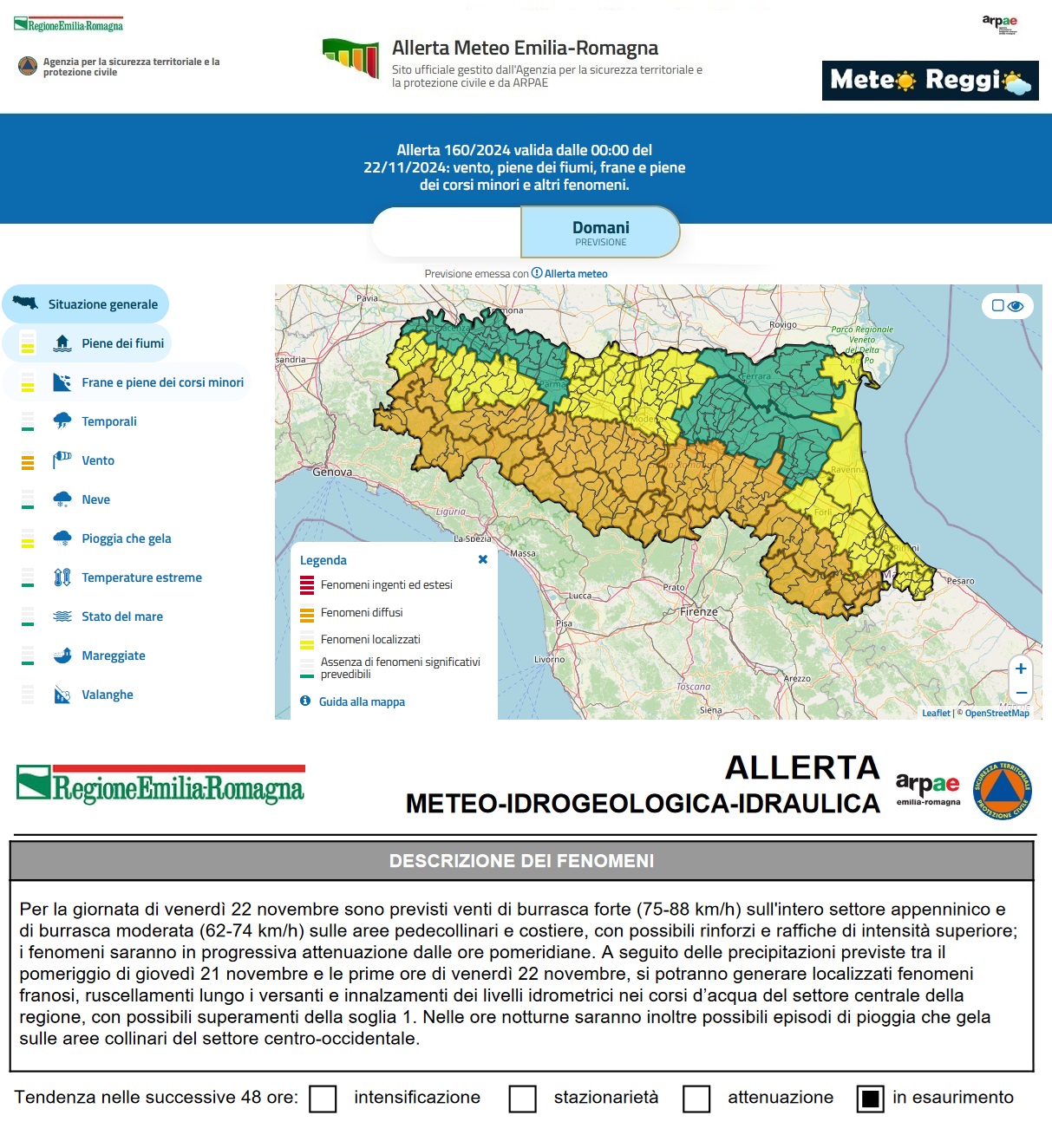 Precipitazioni piuttosto copiose che avranno ripercussioni sul nostro territorio, motivo per cui è stata emessa dall'Agenzia per la sicurezza territoriale e la protezione civile e ARPAE, un'allerta meteo 🟠 "Arancione" valida per la giornata di venerdì 22 novembre.