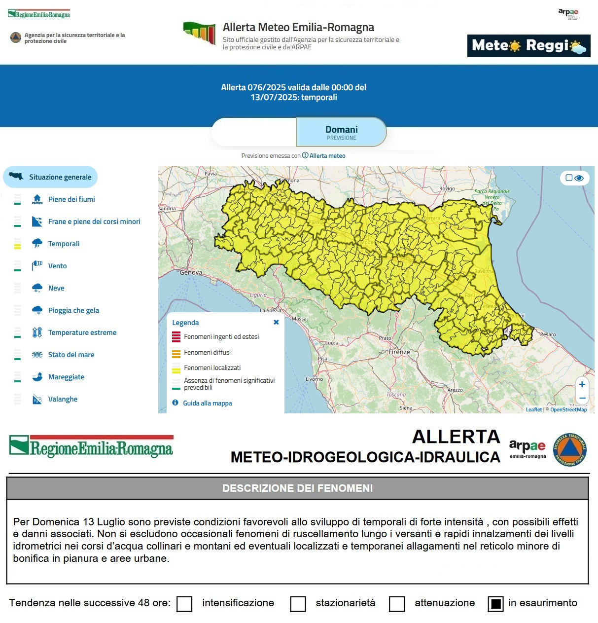 Allerta Meteo del 13 luglio 2025
