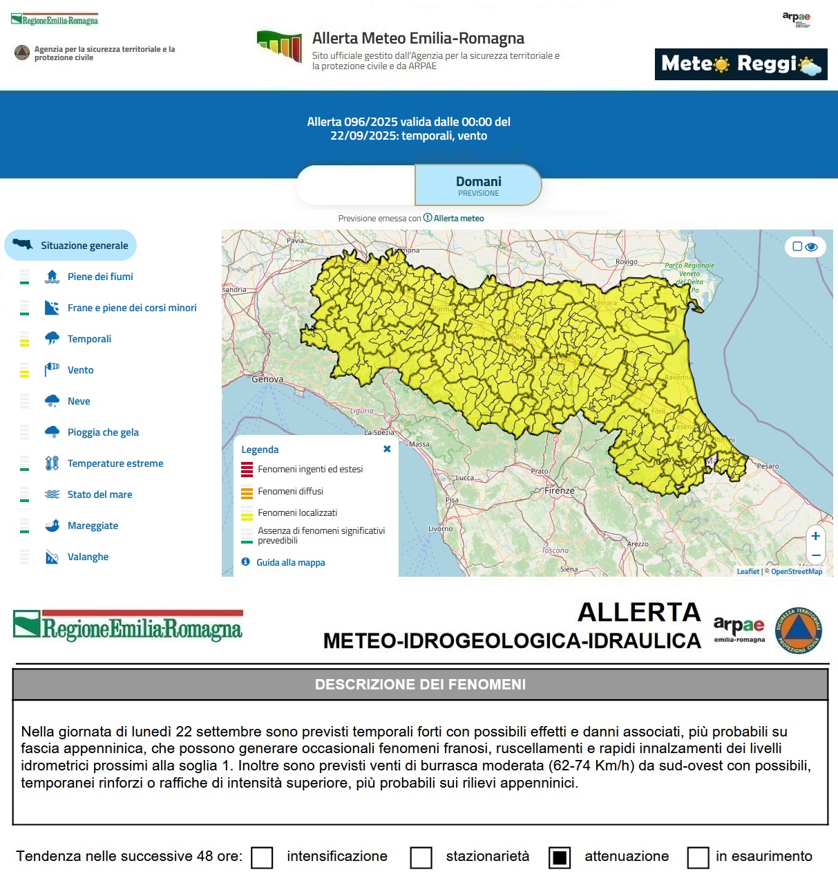 Allerta Meteo del 22 settembre 2025