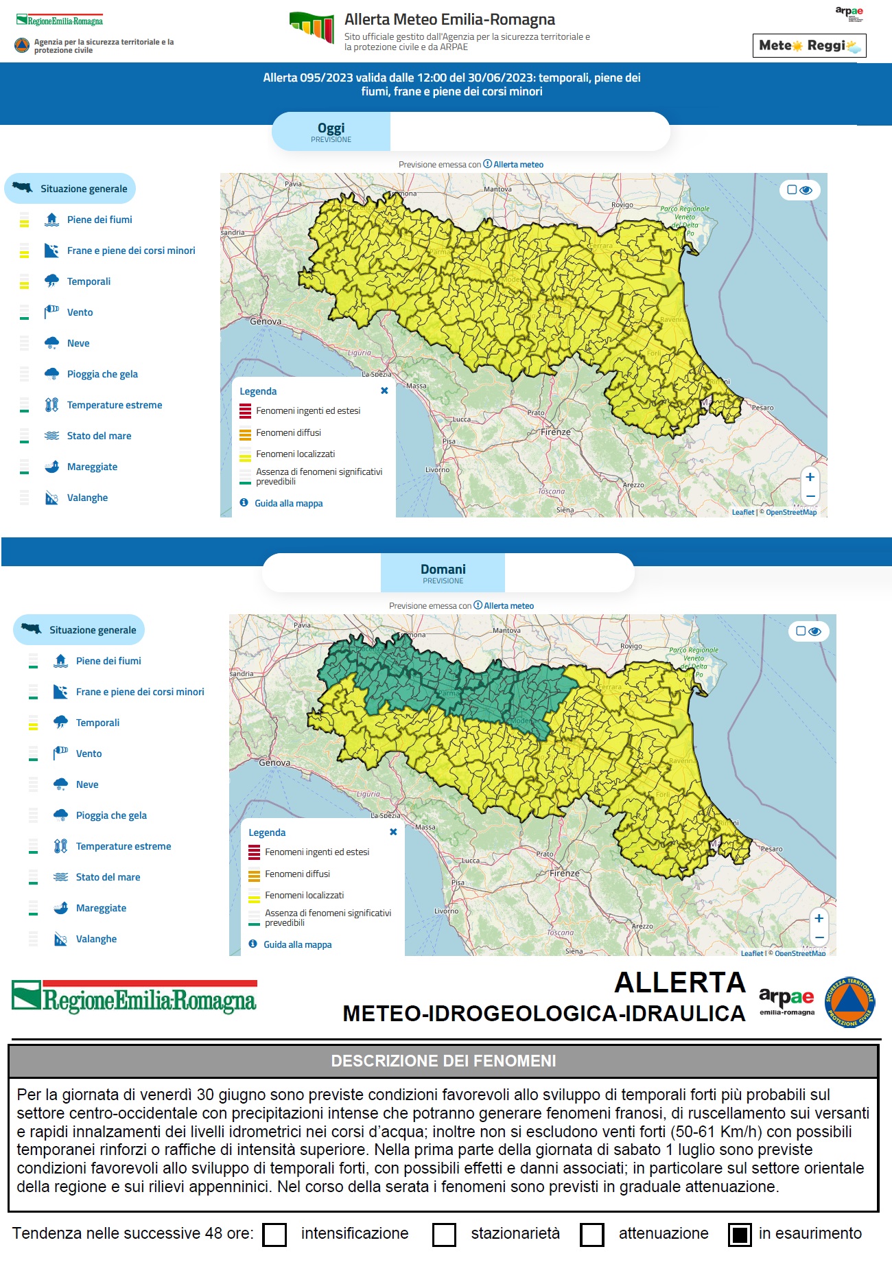 Piccolo ritocco da parte dall'Agenzia per la sicurezza territoriale e la protezione civile e da ARPAE dell'allerta meteo emessa per la giornata di oggi.