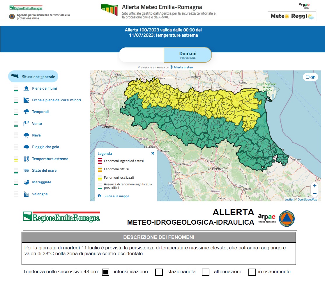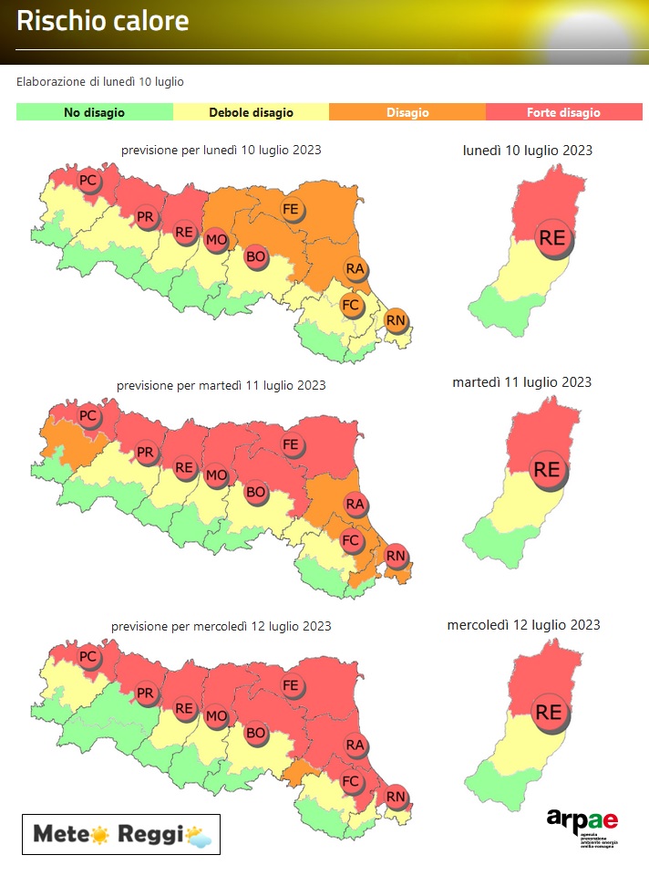 E' stata da poco emessa dall'Agenzia per la sicurezza territoriale e la protezione civile e da ARPAE un'allerta meteo 🟡 "Gialla" per temperature estreme su parte della nostra Provincia per la giornata di domani, martedì 10. Da diversi giorni si parla dell'arrivo di una lunga onda di caldo che ci avrebbe investito direttamente con temperature molto alte sia nei valori massimi che minimi.