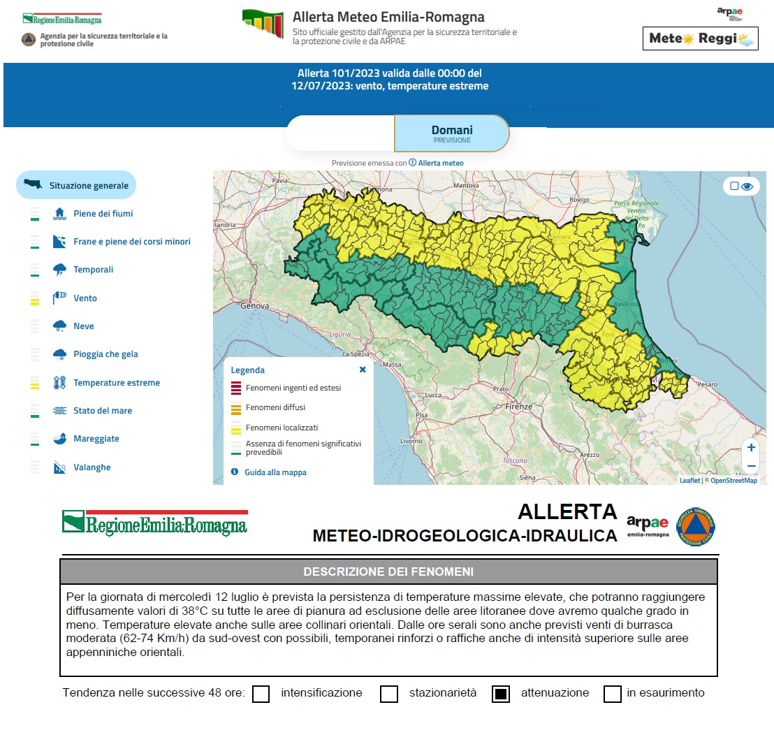 E' stata prolungata anche alla giornata di domani, dall'Agenzia per la sicurezza territoriale e la protezione civile e da ARPAE, l'allerta meteo 🟡 "Gialla" per temperature estreme