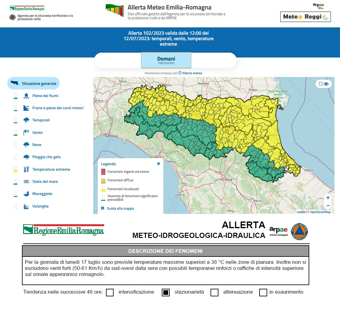 Il grande caldo diventa sempre più oppressivo, questo ha indotto l'Agenzia per la sicurezza territoriale e la protezione civile e da ARPAE ad emettere un'allerta meteo 🟡 "Gialla" per temperature estreme.