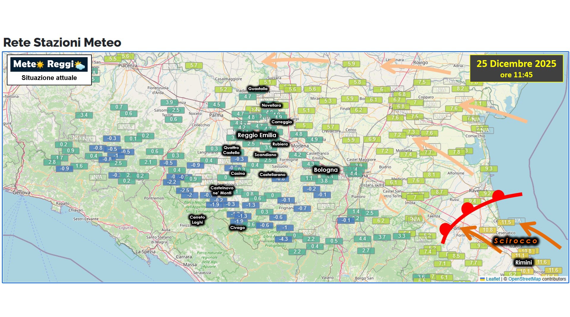 Temperature ancora freschine, quindi, ma non troppo. In passato una perturbazione simile avrebbe sicuramente comportato accumuli nevosi ben diversi ma le correnti di Bora non sono riuscite a raggiungerci e il tutto è rimasto relegato all'Appennino dove dopo tanti anni è tornato il "bianco Natale".