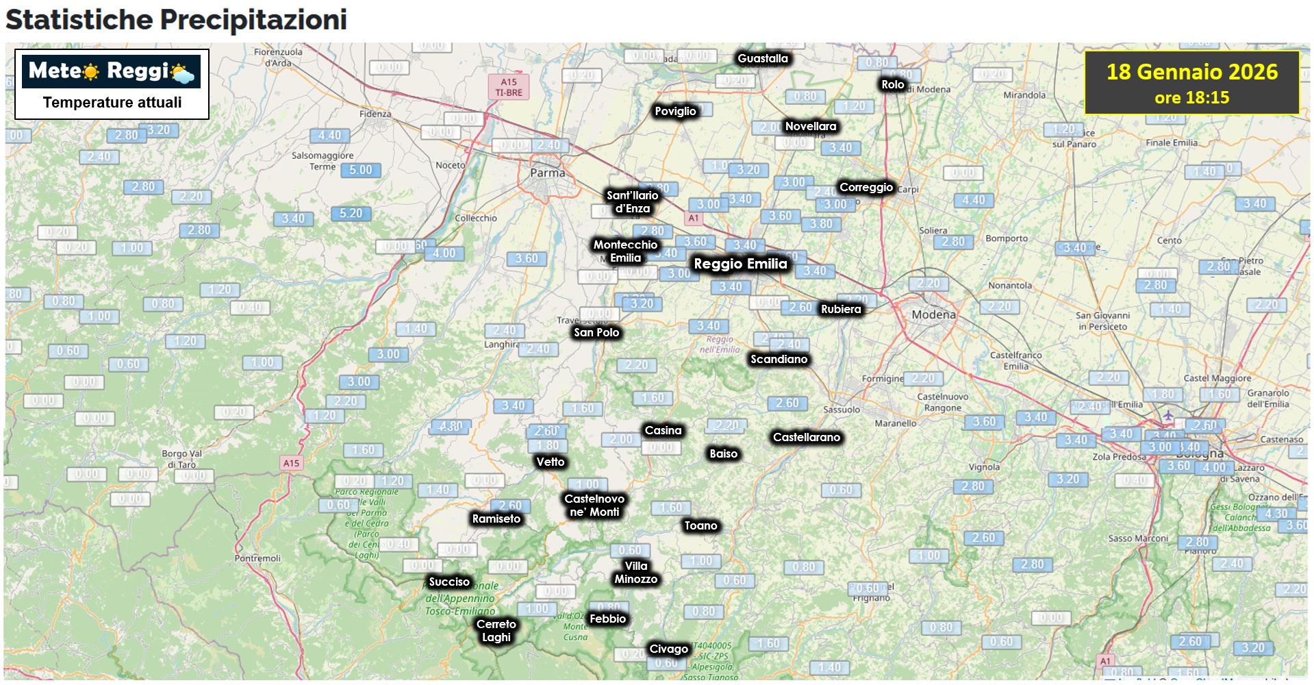 Ecco le massime registrate oggi in provincia di Reggio Emilia: