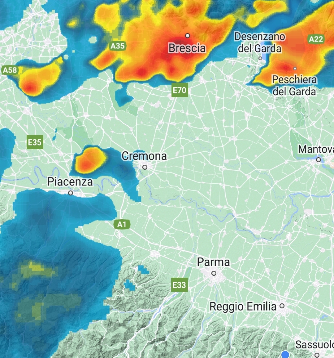I fronti sono 2: uno lombardo discretamente forte e uno piemontese che ha raggiunto il piacentino ed il parmense.