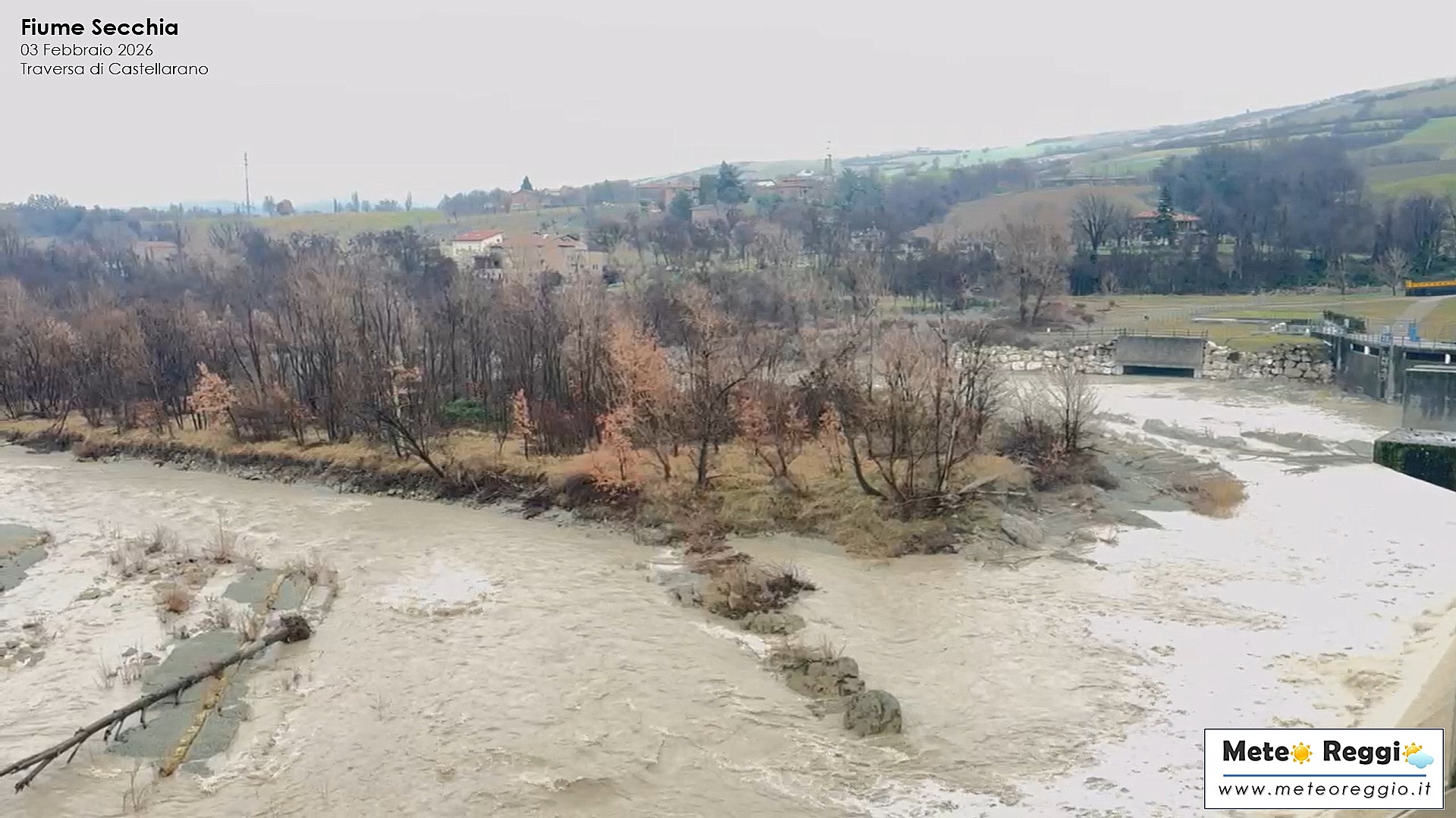 Tranquillo anche il fiume Secchia più ad est, attualmente il livello è poco sotto soglia 1 e la situazione è ben visibile dalla nostra immagine catturata presso la traversa di Castellarano in questi minuti.