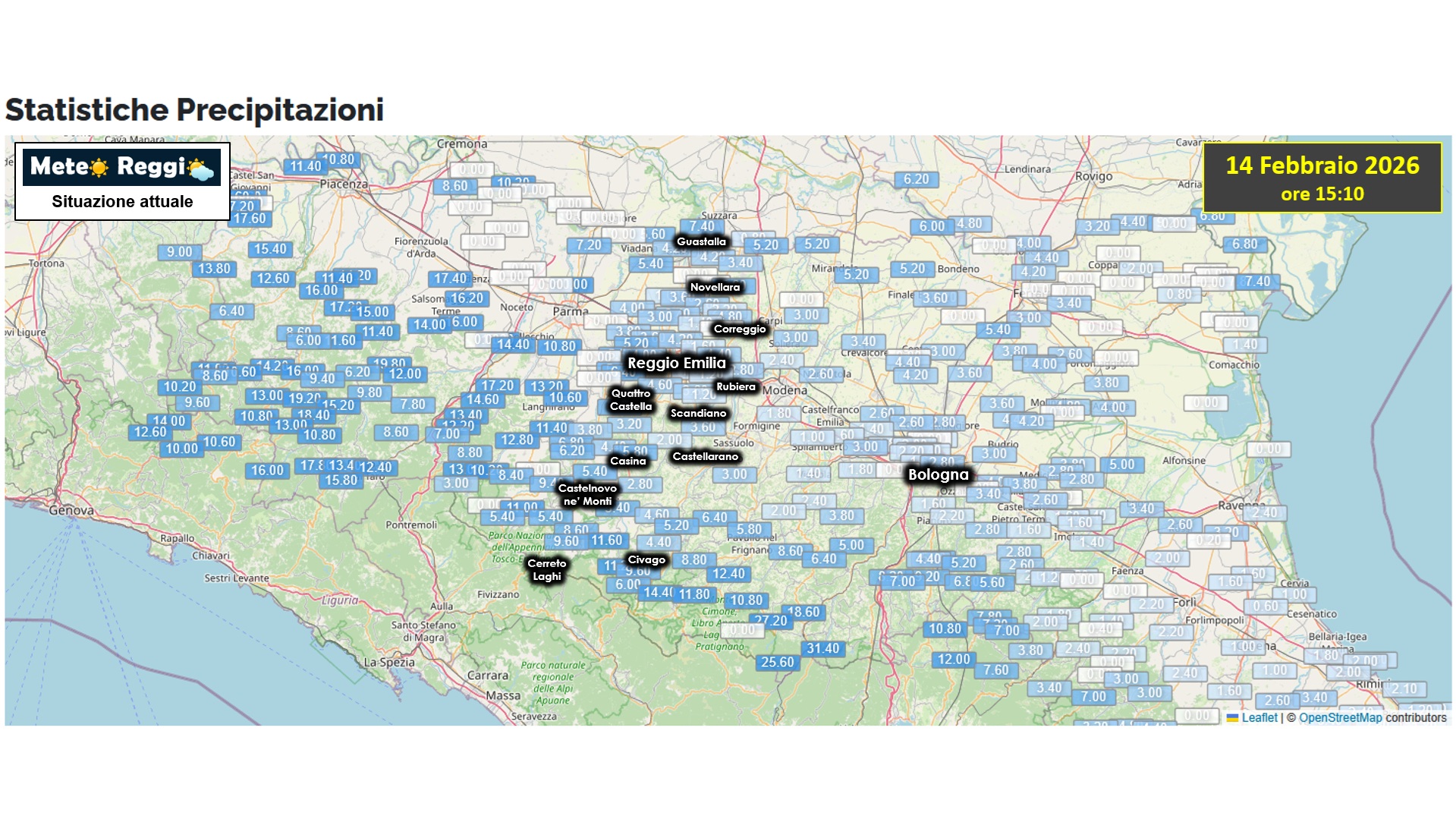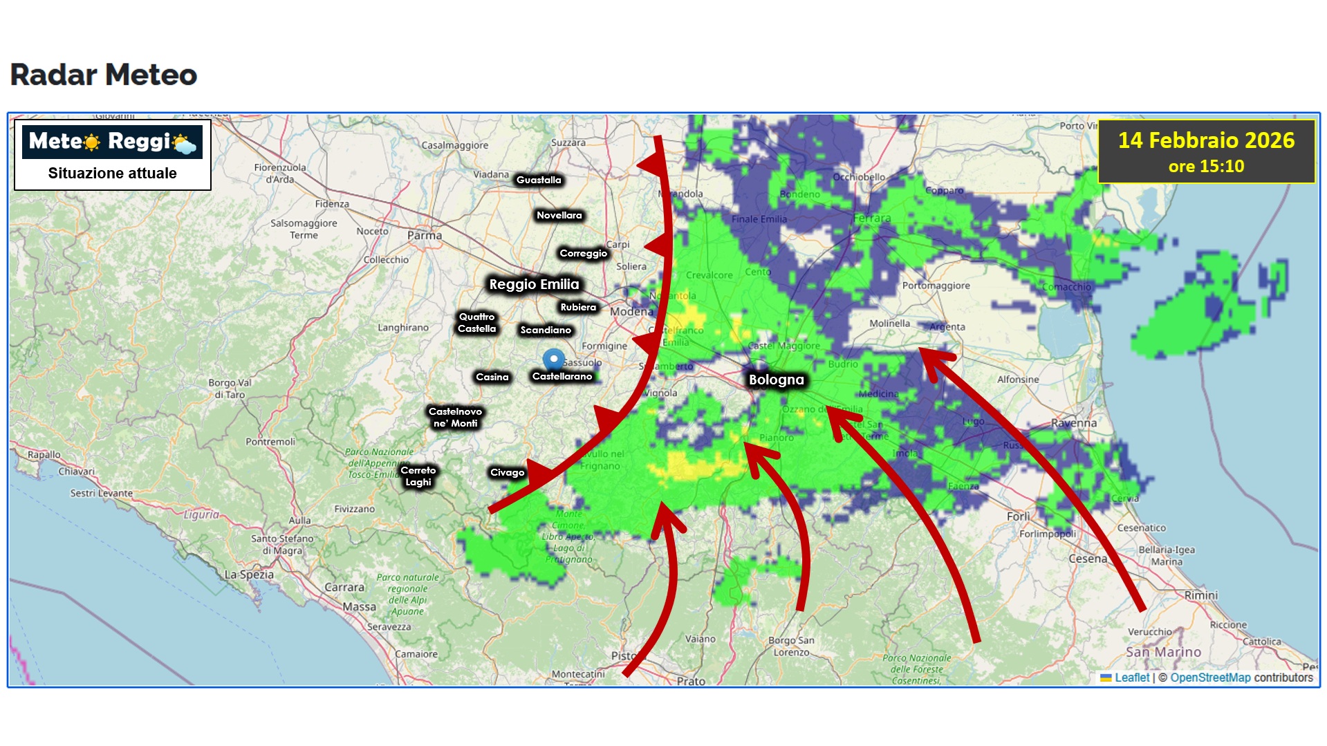 Siamo ancora nel vivo della perturbazione Oriana che condiziona questa giornata di San Valentino con piogge intermittenti ma tutto sommato deboli o non minacciose. Accumuli in doppia cifra solo sull'Appennino per il momento, ma ci troviamo in una fase di "tregua" che nelle prossime ore cesserà. Ombrello pronto, quindi, perché dal modenese sono in arrivo altre piogge che a breve ci raggiungeranno.