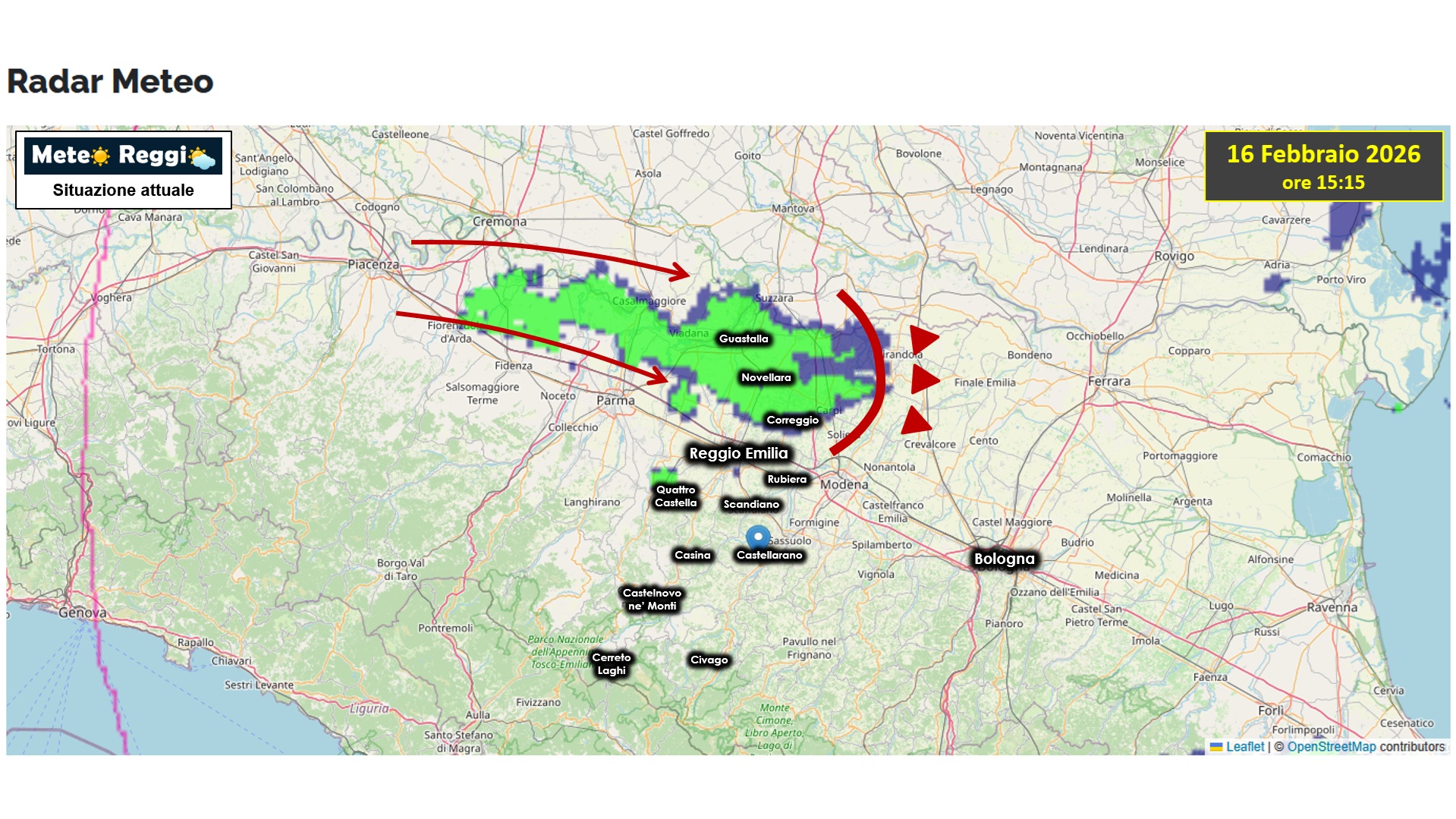 In questi minuti, infatti, un nucleo di pioggia tranquillo sta passando a nord della Via Emilia e altre piccole celle trascurabili stanno prendendo forma a macchia di Leopardo.
