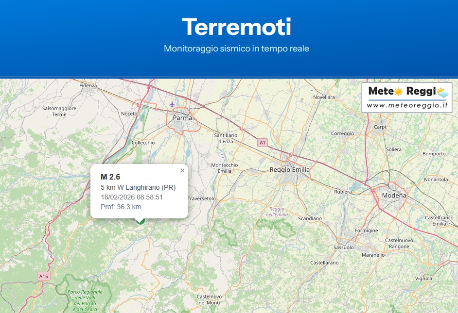 Questa mattina un piccolo movimento tellurico si è manifestato sulla collina parmense poco distante dalla nostra valle dell'Enza. Alle 09:58 poco distante dal Langhirano si è manifestato un evento di magnitudo 2.6 ad una profondità rilevante di 36 km.