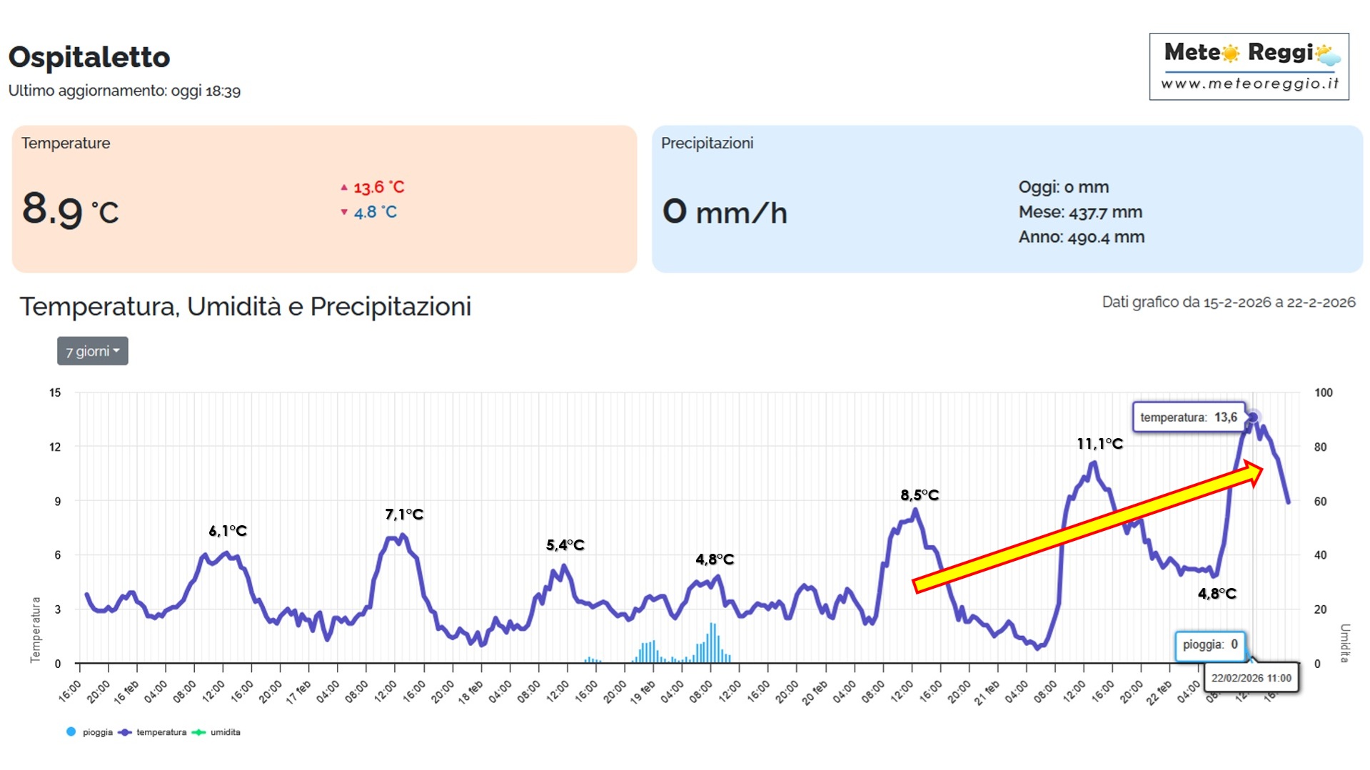 Valori praticamente raddoppiati con minime che rappresentavano le massime di qualche giorno fa. E così finisce che Reggio Emilia e Ospitaletto abbiano fatto registrare la medesima temperatura massima.