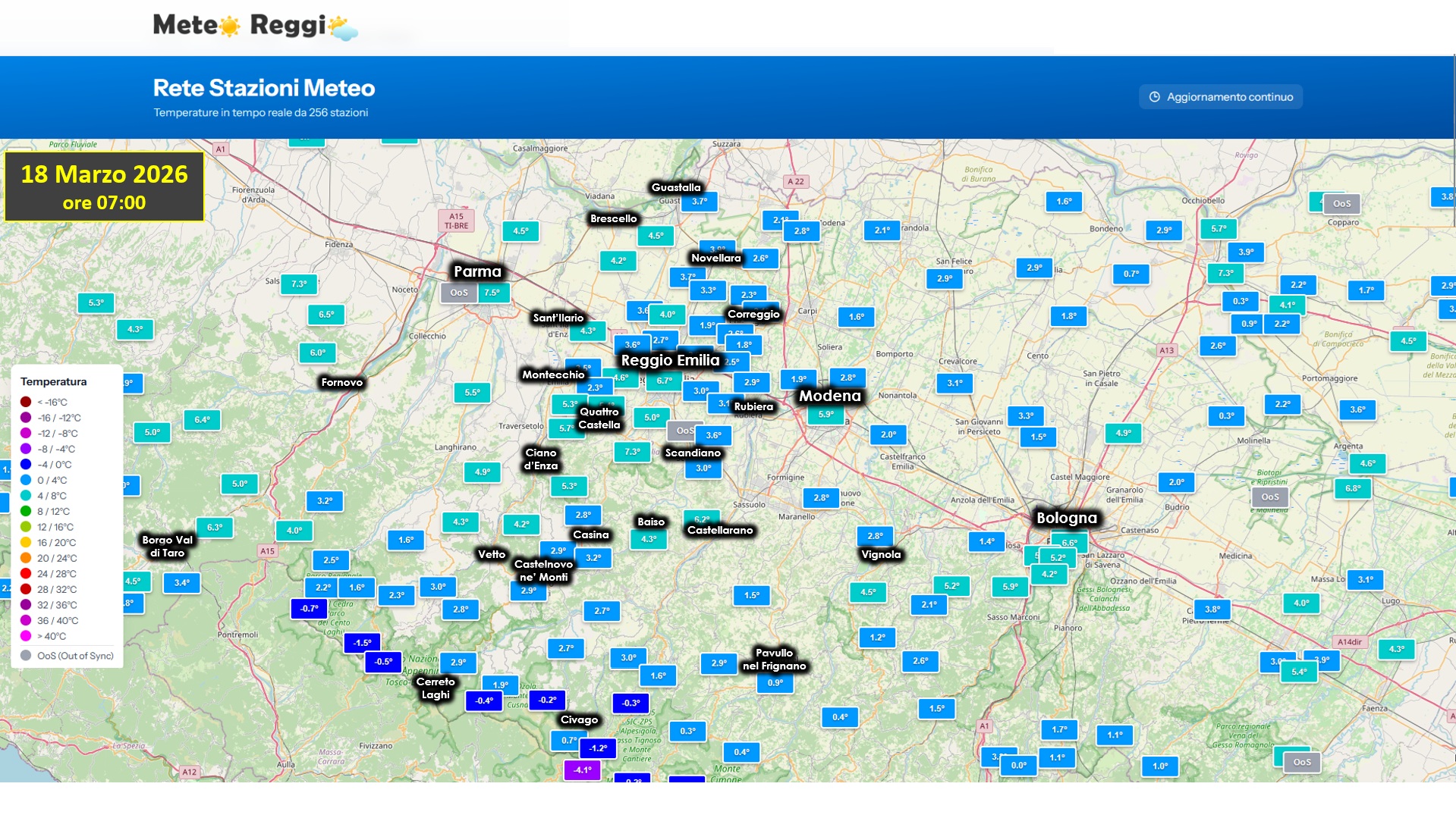 Come da programma l'alba è stato uno spettacolo. Cielo completamente sereno dopo una nottata di cielo coperto o molto nuvoloso. Gelate diffuse in Montagna e valori più miti in Collina, mentre nelle campagne della Pianura i valori sono scesi ma rimasti sempre sopra 1°C.