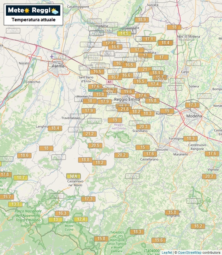 Questa notte è stata abbattuta la soglia dei 10°C anche sulle zone di Pianura, nelle campagne attorno a Reggio Emilia si è arrivati a 9°C, mentre in Città l'isola di calore ha fermato le colonnine di mercurio a 16,8°C.