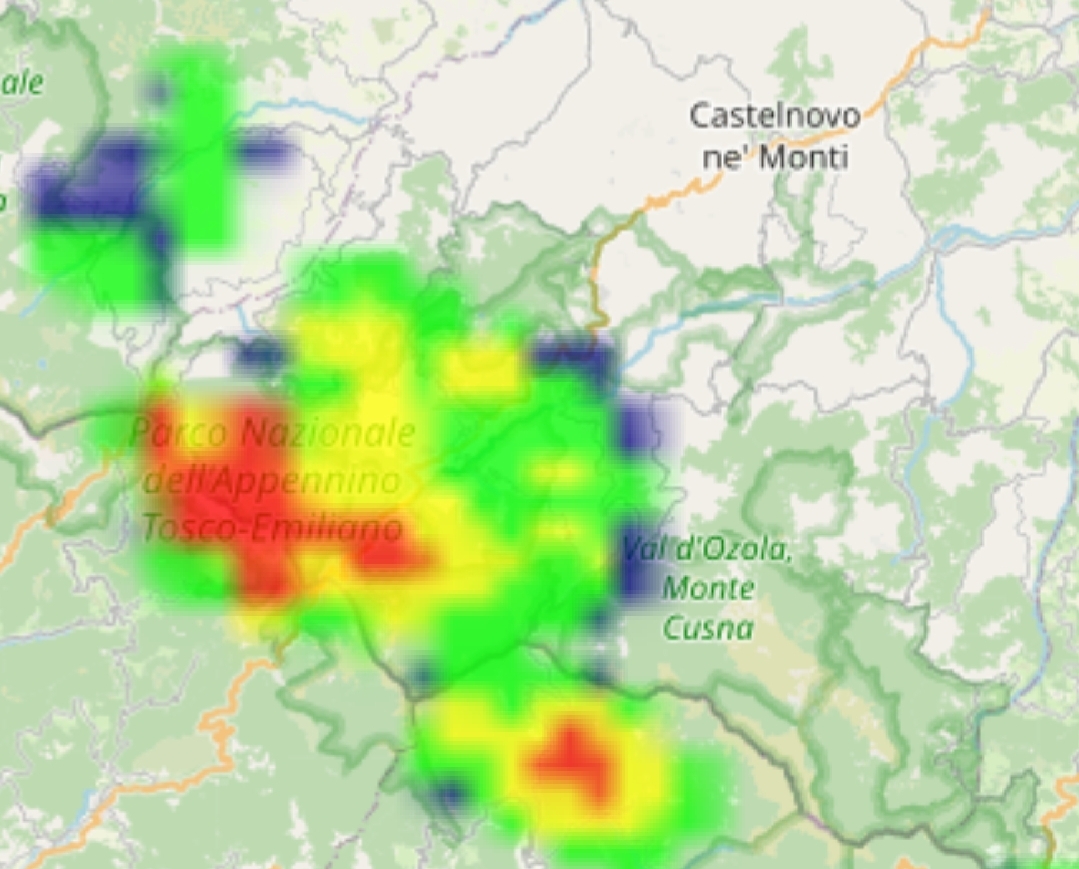 Forti piogge interessano l'area del Ventasso e del Cavalbianco.