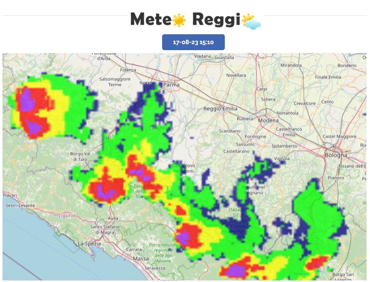 Risuonano un po' di tuoni nell'alta valle dell'Enza tra le province di Reggio Emilia e Parma. A ovest del Ventasso abbiamo forti piogge, ma nessun evento grandingeno. Grandine è segnalata in un nucleo molto più occidentale nel piacentino.