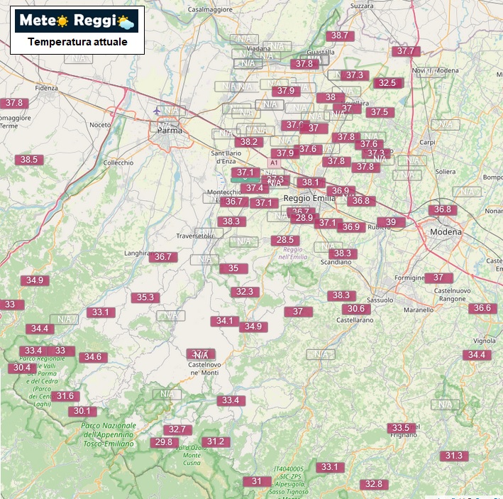 38,4°C a Sant'Ilario d'Enza