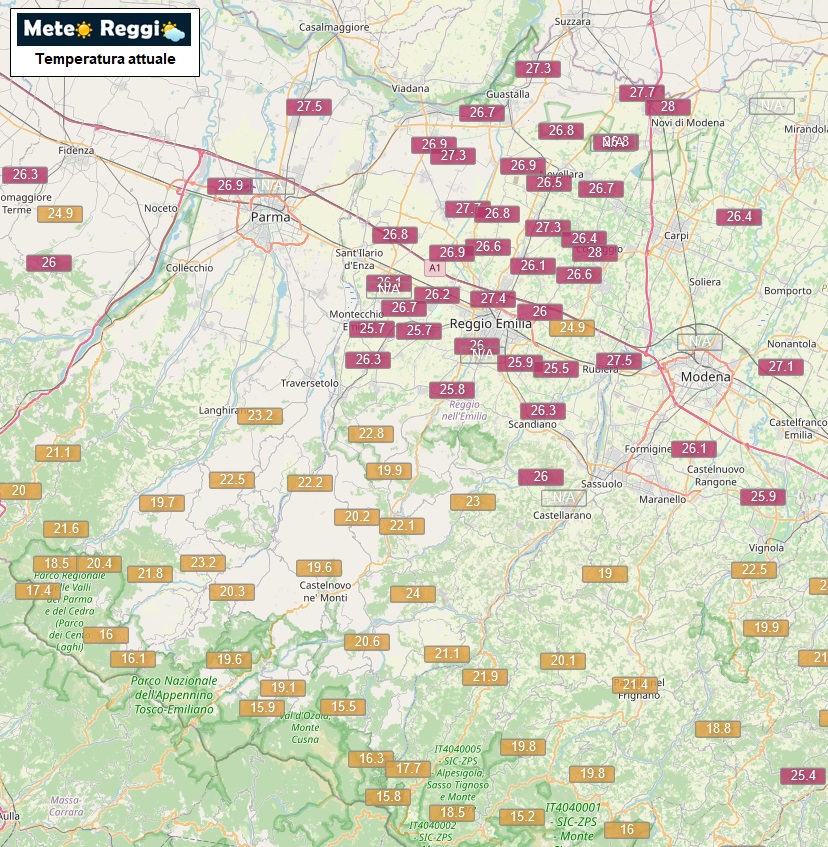 28,4°C a Bagnolo in Piano28,2°C a Rolo