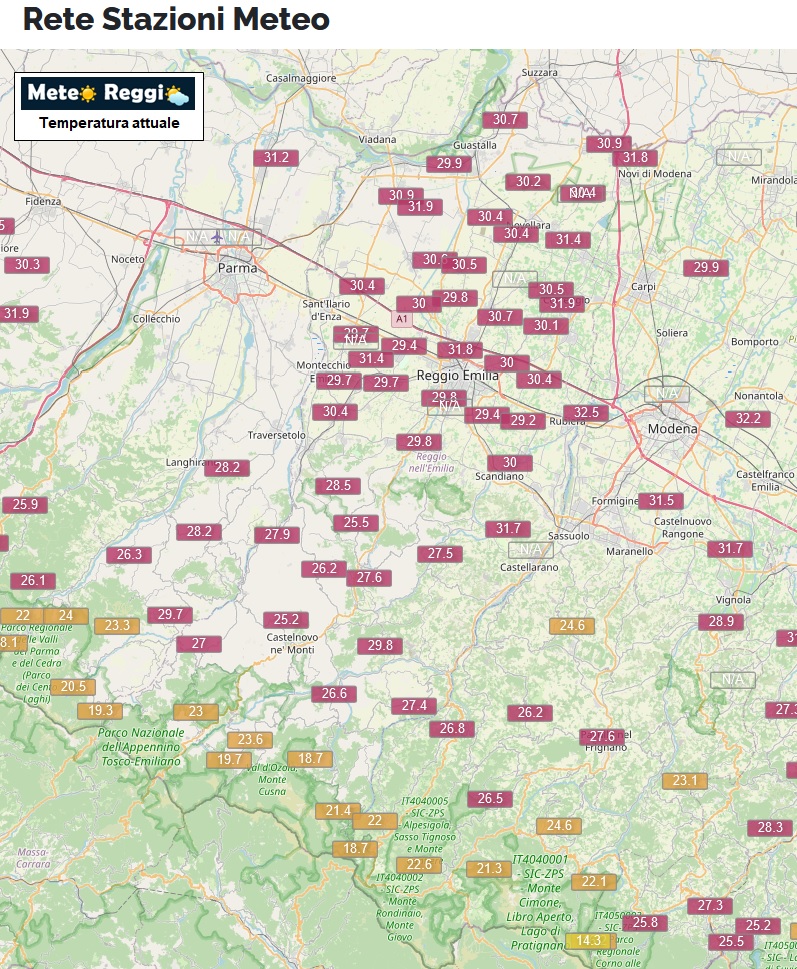 32,5°C a Reggio nell'Emilia