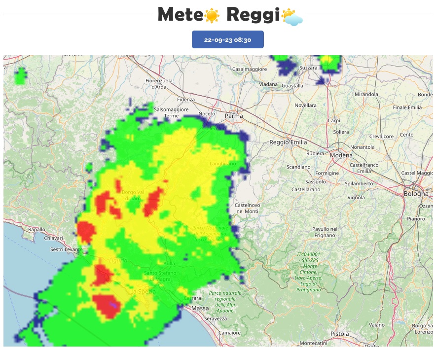 Dal golfo di Liguria avanza una perturbazione che già da diverse ore sta interessando il parmense con piogge continue. Attualmente piove nella valle dell'Enza e le prime pioviggini stanno interessando la zona di Montecchio Emilia e Sant'Ilario d'Enza.