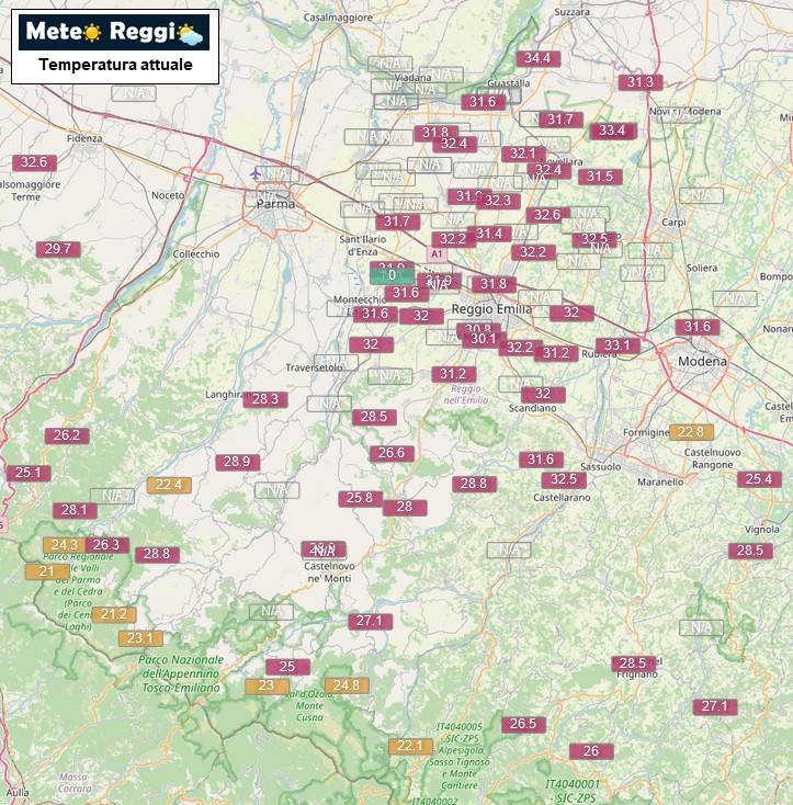 Gran caldo sulla Provincia di Reggio Emilia. Il cielo non presenta praticamente nuvole degne di nota ed il Sole è libero di esprimersi scaldando il nostro suolo.
