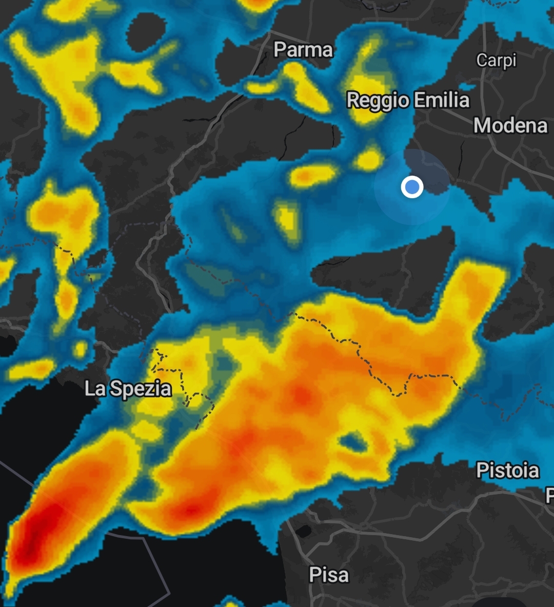 Nuovo e forte impulso temporalesco in discesa dell'Appennino.