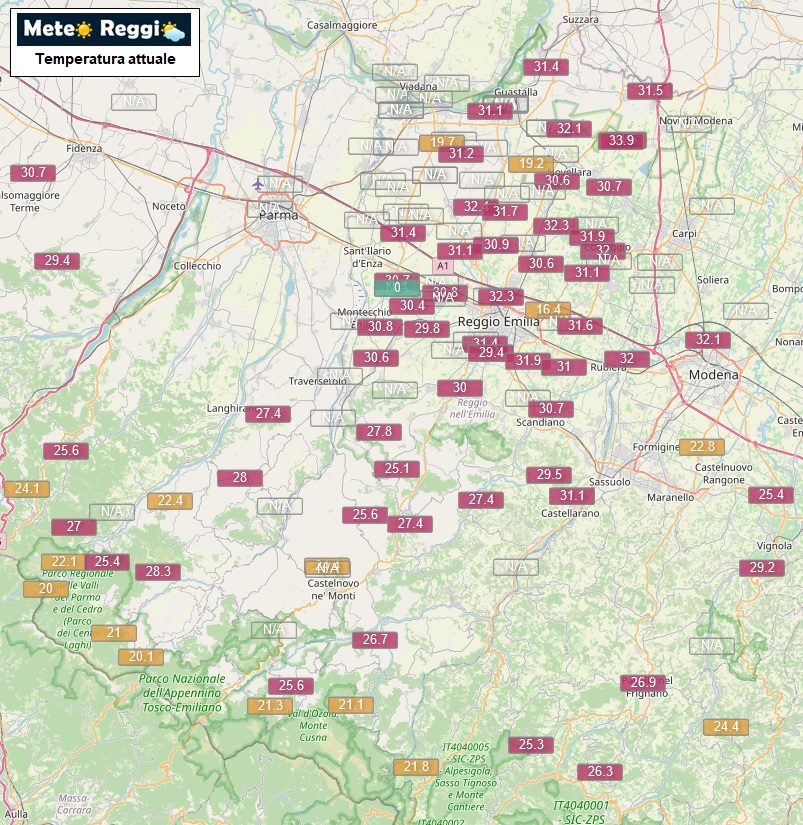 32,5°C a Reggio nell'Emilia
