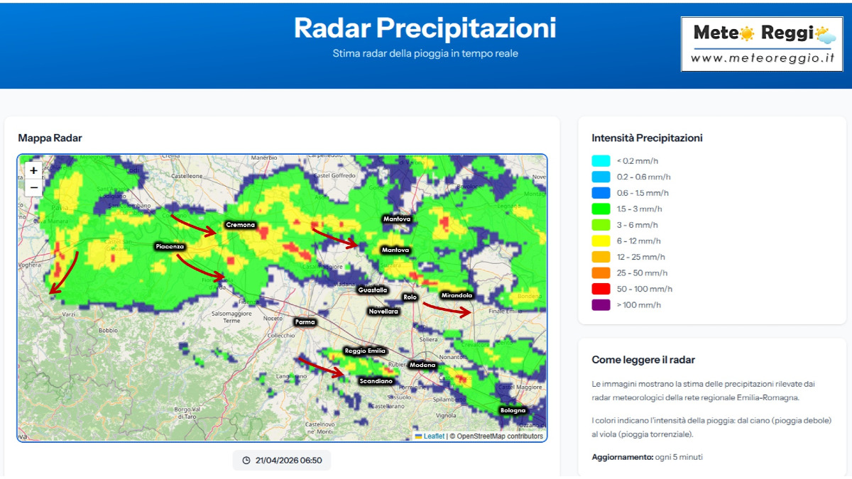 Ora abbiamo un nuovo nocciolo temporalesco che dal Po parmense si approccia alla Pianura reggiana. Ombrello a portata di mano, quindi, perché ne avremo bisogno fino a metà mattinata.