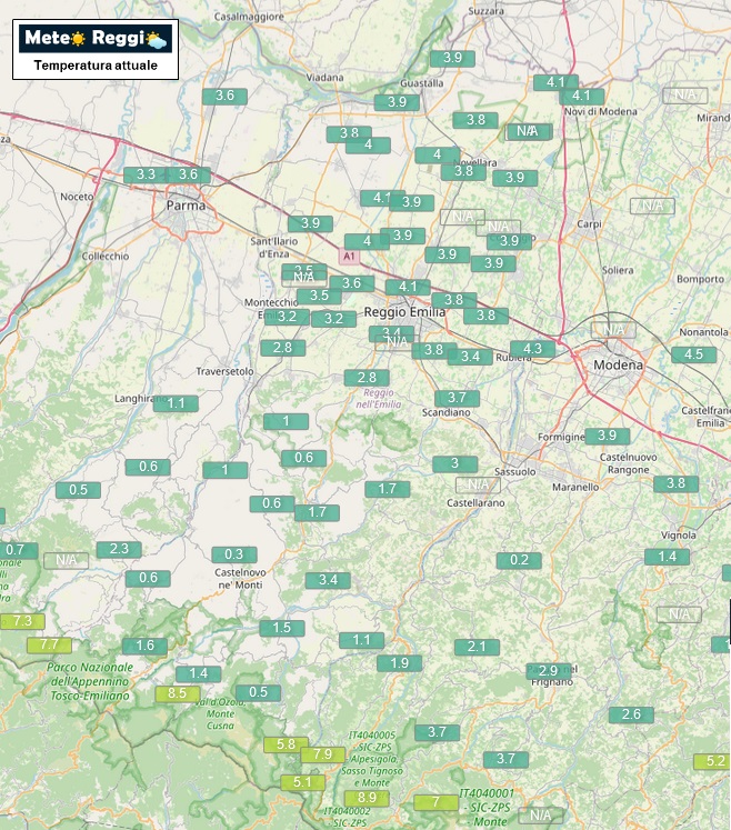 Gran freddo su quasi tutta la Provincia di Reggio Emilia ad eccezione del Crinale dove soffia forte il vento mite di Libeccio che non permette alla neve di cadere copiosa.