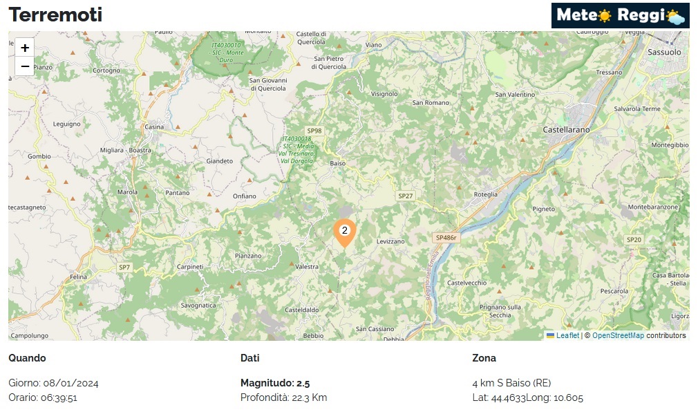 Una lieve scossa di terremoto è stata registrata questa mattina nel Comune Baiso.