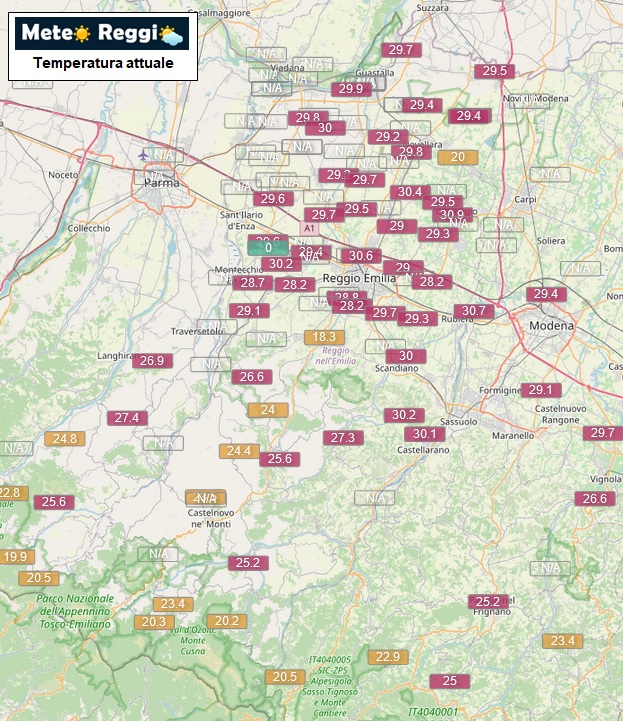 Ecco i valori registrati dai termometri oggi pomeriggio:
