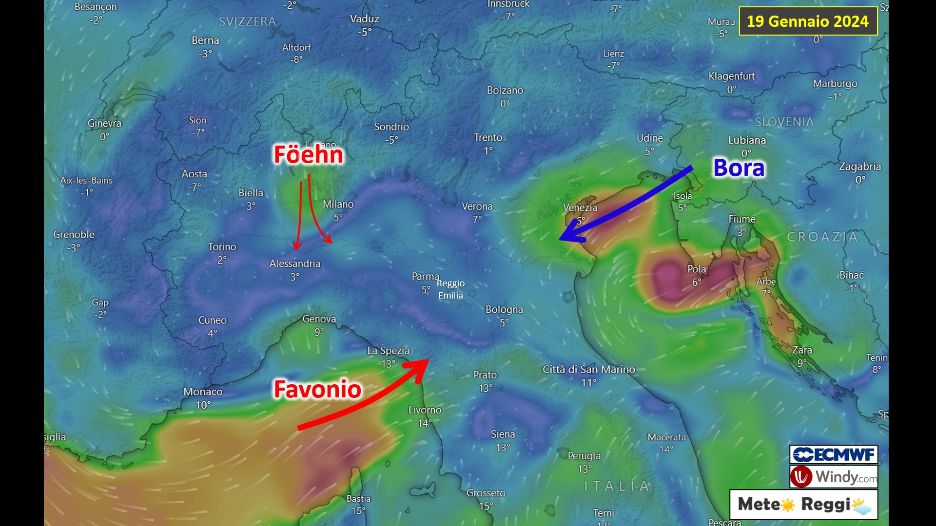 Tutto ancora tranquillo sulla provincia di Reggio Emilia. Le precipitazioni non hanno ancora preso forma ed il nostro territorio si trova nella morsa tra due grandi protagonisti. Il vento mite di Libeccio dietro il Crinale e una corrente di Bora fredda in arrivo dal nord-est.