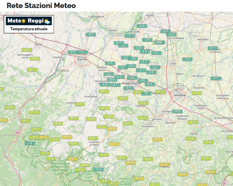 3,8°C a Reggio nell'Emilia