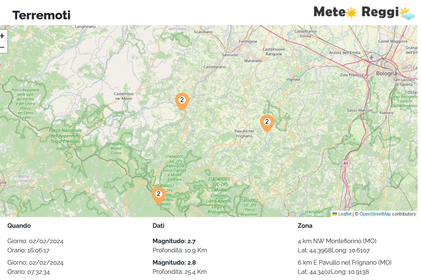 Piccoli movimenti avvengono sotto l'Appennino reggiano e modenese. Nella giornata di oggi si sono verificati due sismi di modesta intensità in due aree diverse: