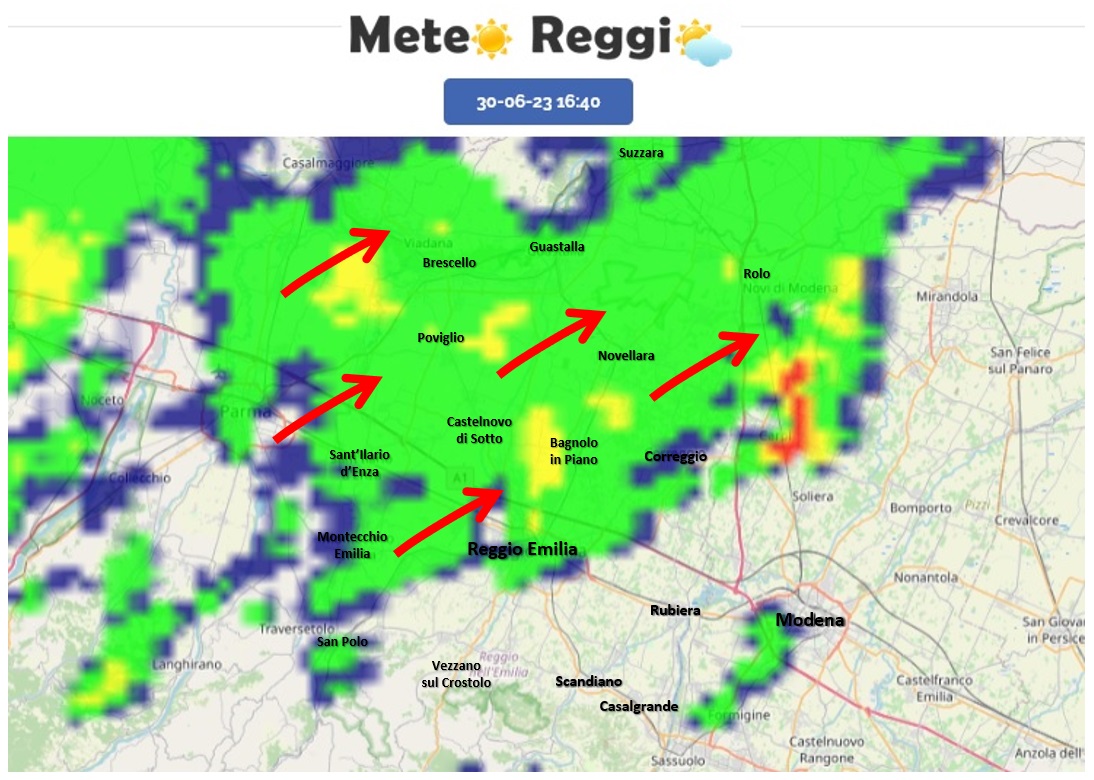 Si sono spostate a nord della via Emilia le deboli piogge che nella prima parte del pomeriggio hanno interessato soprattutto Collina e Pedecollinare.