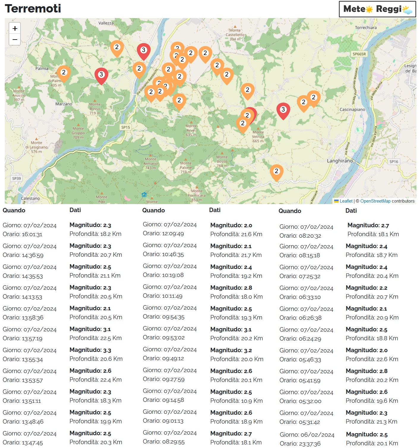 Non concede alcuna tregua lo sciame sismico in atto da questa mattina sulle colline parmensi tra Langhirano e Marzolara. Ormai i sismi oltre magnitudo 2.0 sono più di una trentina e come vi avevamo annunciato nel nostro ultimo aggiornamento, si sono verificati altri eventi oltre magnitudo 3.0