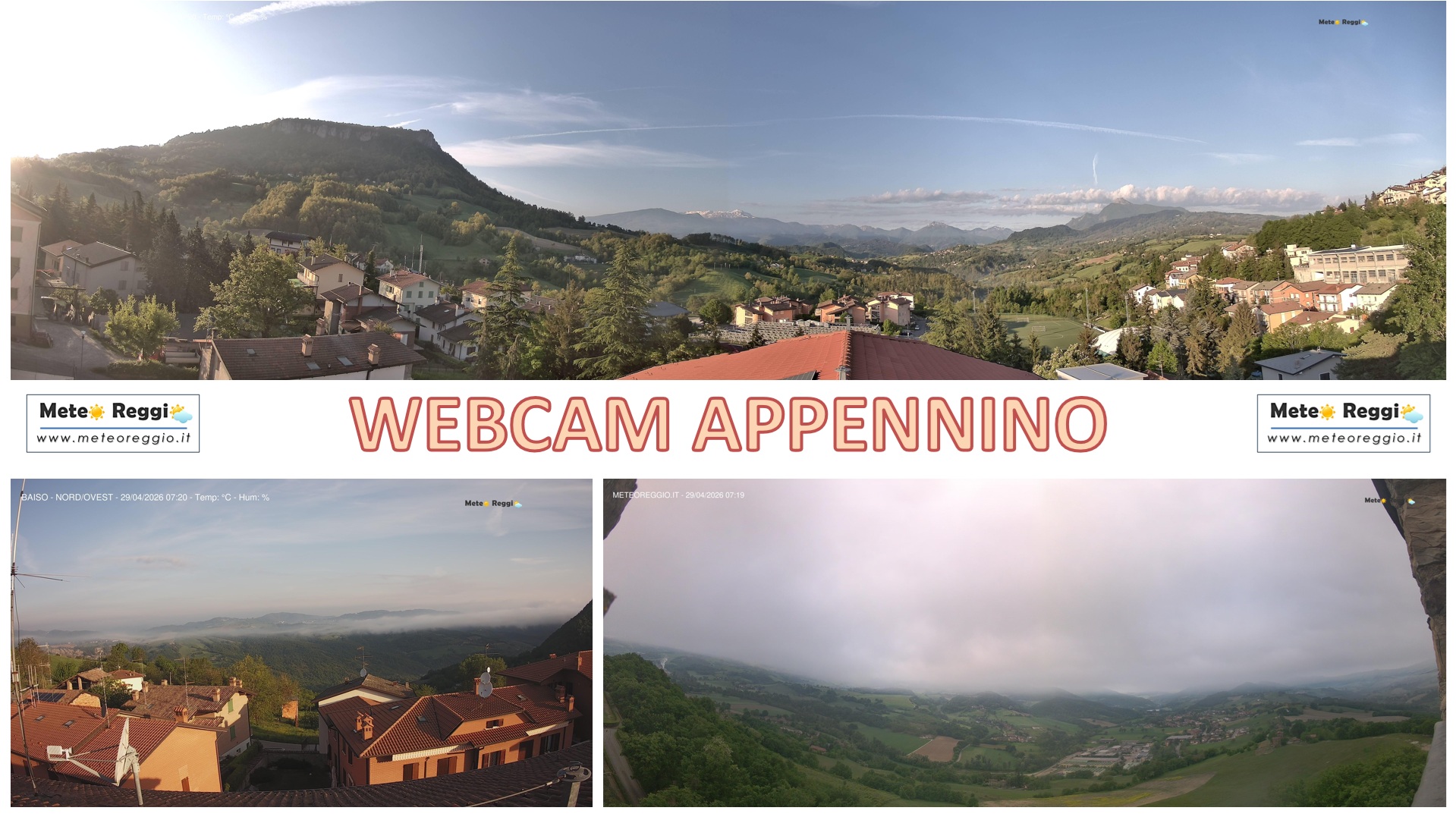 Cielo sereno o poco nuvoloso in Montagna e alta collina dove sono presenti alcune stratificazioni trascurabili. Situazione buona anche a nord della Via Emilia dove abbiamo qualche foschia, ma il Sole riesce ad esprimersi molto meglio che a ridosso della prima fila di colline.