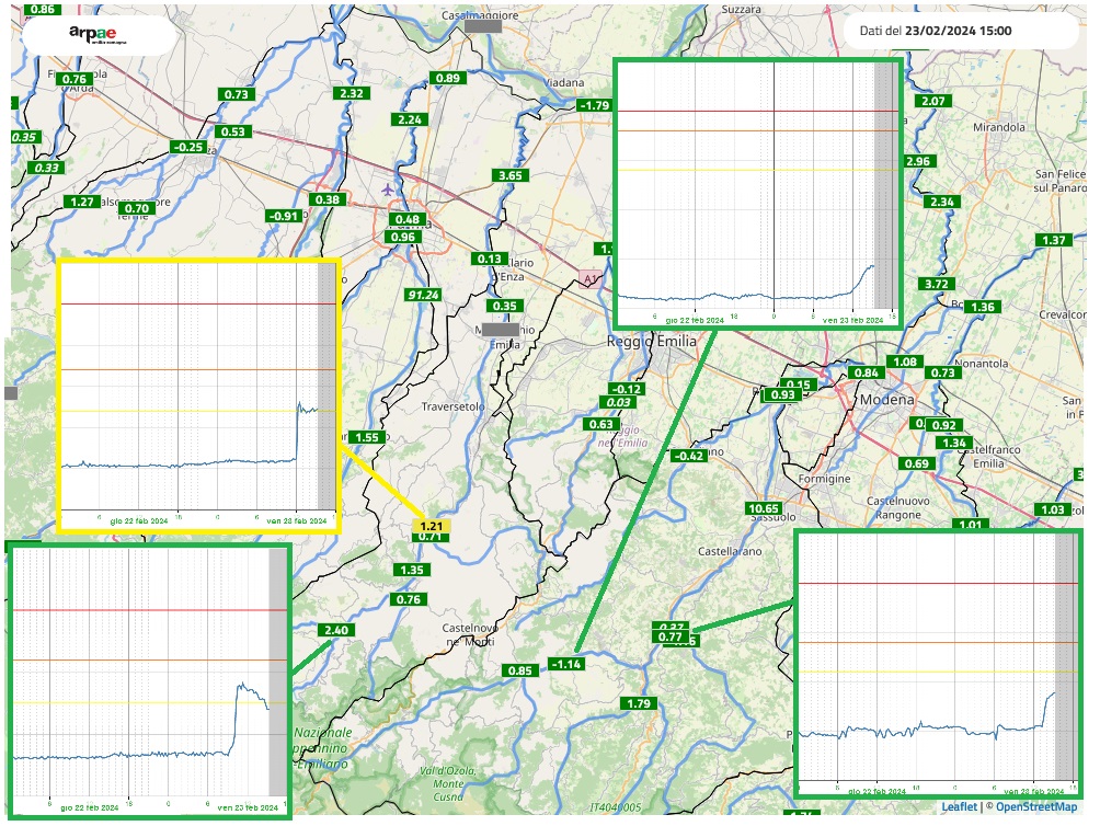 Dal momento che la pioggia è caduta copiosa in Montagna, non ci sono segni di movimento da parte dei torrenti Crostolo e Tresinaro.