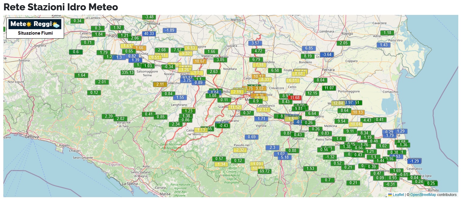 Hanno ripreso a crescere anche il Crostolo ed il Tresinaro per via delle forti piogge che interessano la Collina. Al momento sono ampiamente sotto soglia 1.