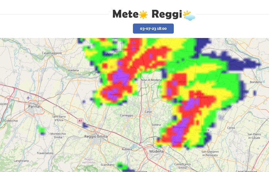 La cella muove minacciosa verso sud-est e mette nel mirino la zona di Correggio, Bagnolo in Piano e Rio Saliceto. Le temperature nelle zone interessate dal temporale sono crollate di 7°C.