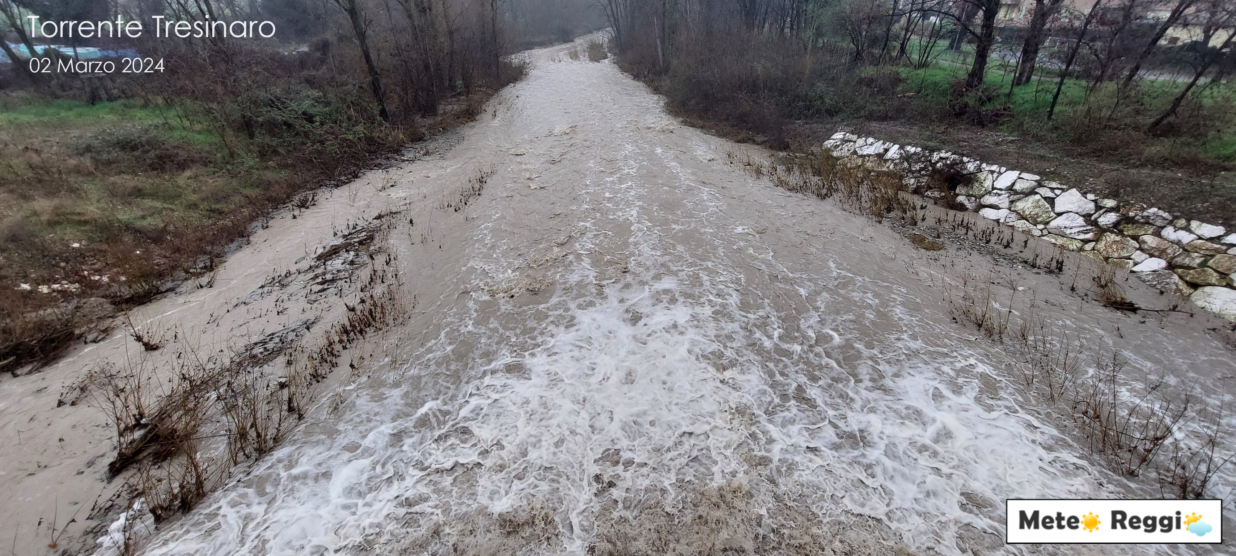Nella serata di ieri è stato il torrente Tresinaro a dare segno di sè in modo sensibile. Le precipitazioni cadute dopo il tramonto hanno portato accumuli che sono caduti con forza tra le valli di Tresinaro e medio Secchia. Nulla di preoccupante, ma il torrente ha toccato il suo massimo in questa perturbazione superando soglia 1 fin quasi a sfiorare soglia 2.