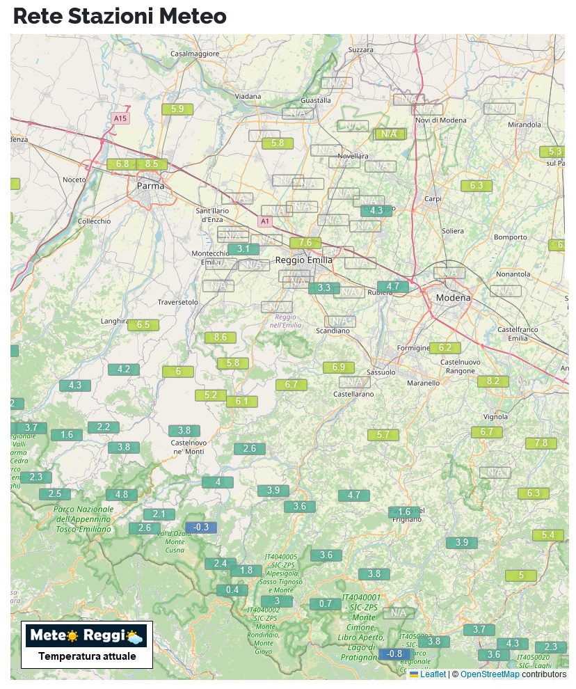 Temperature minime attorno ai 9°C sulla Pedecollinare, mentre in Montagna si torna finalmente attorno allo zero o addirittura poco sotto in alcune zone ben esposte.