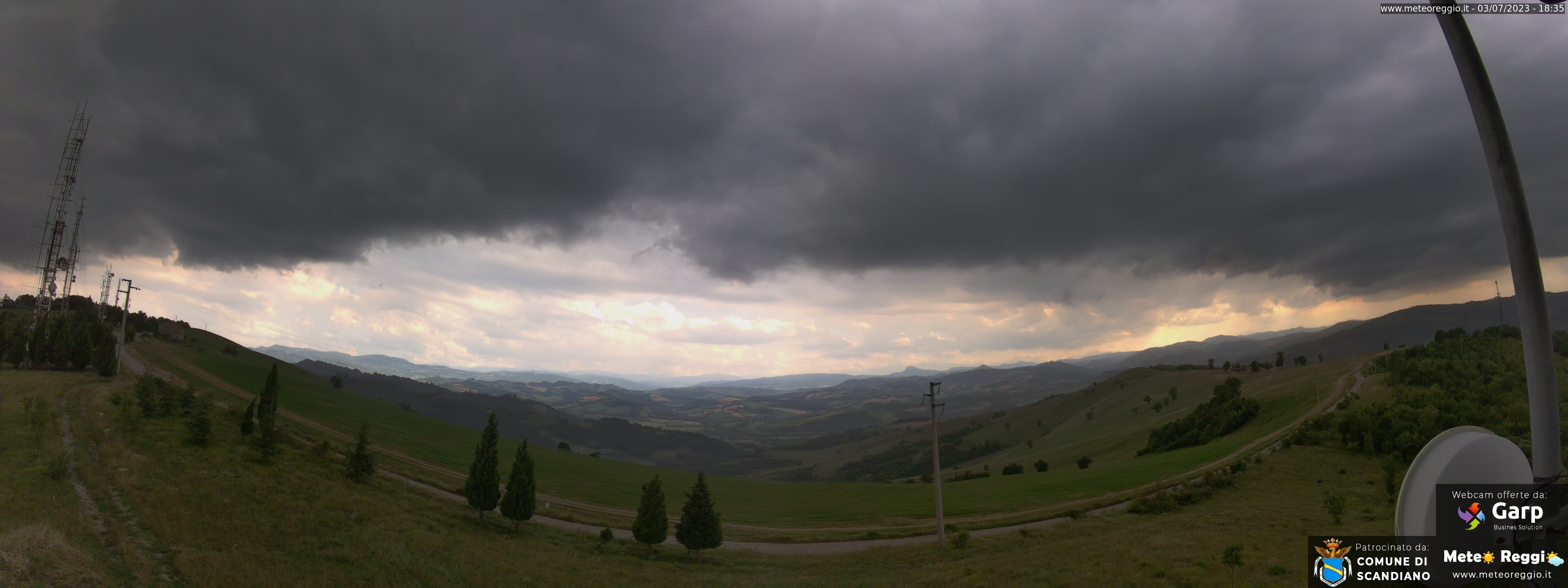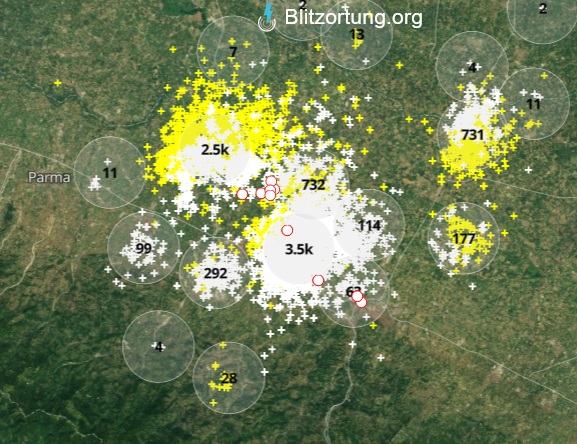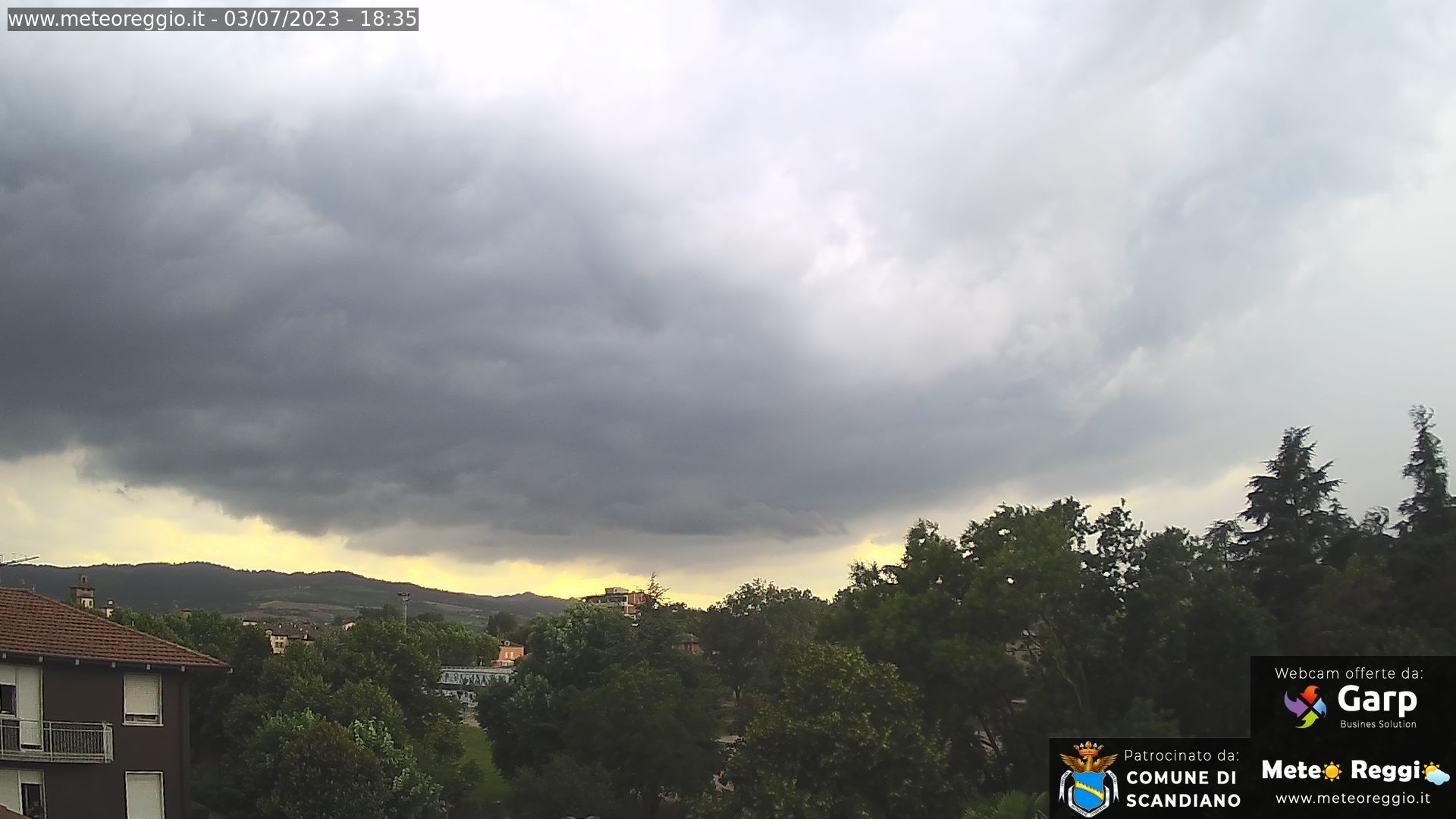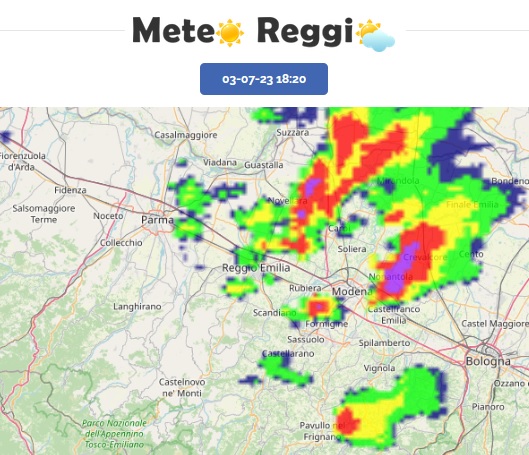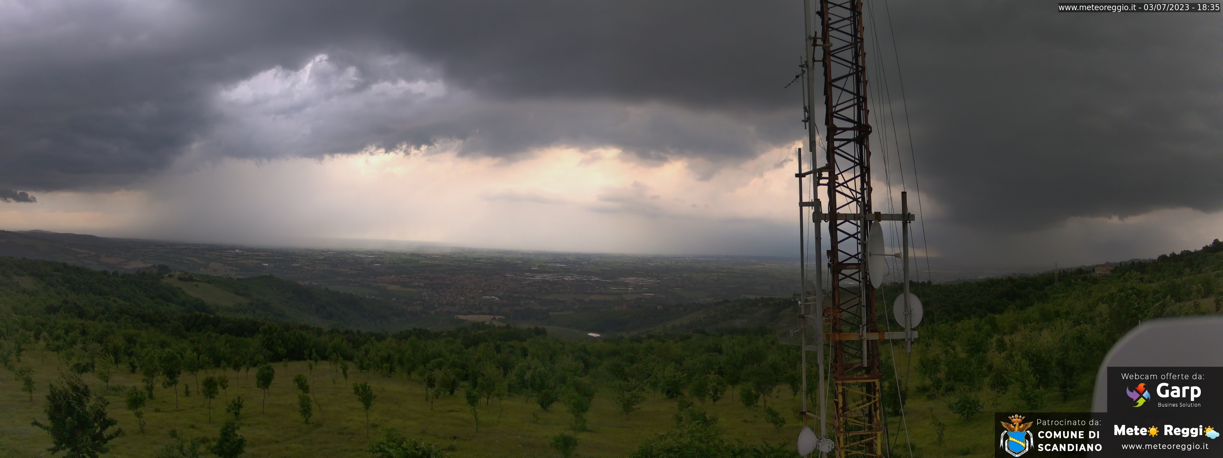 Forti piogge segnalate a sud di Reggio Emilia in zona Rivalta, Canali, Albinea.