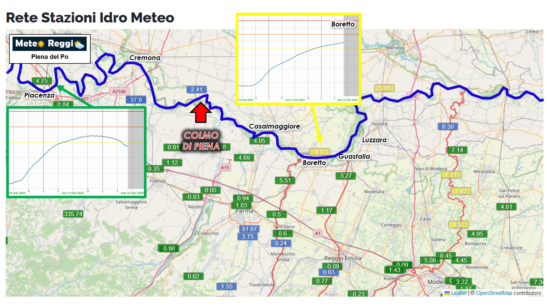 Questa mattina attorno alle 08:00 il colmo è transitato da Isola Pescaroli in direzione Casalmaggiore. E' previsto che raggiunga Boretto attorno alle 20:00/21:00 e Luzzara circa 3 ore più tardi.
